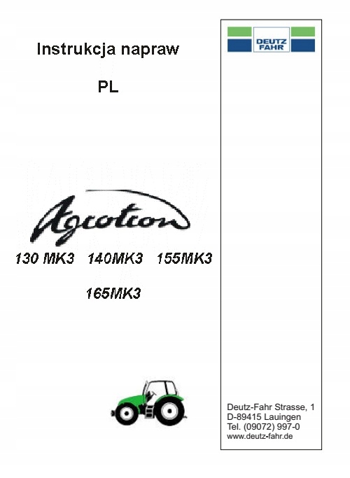 Інструкції щодо ремонту сільськогосподарських тракторів deutz-fahr agrotron 130mk3, 140mk3, 155mk3, 165mk3