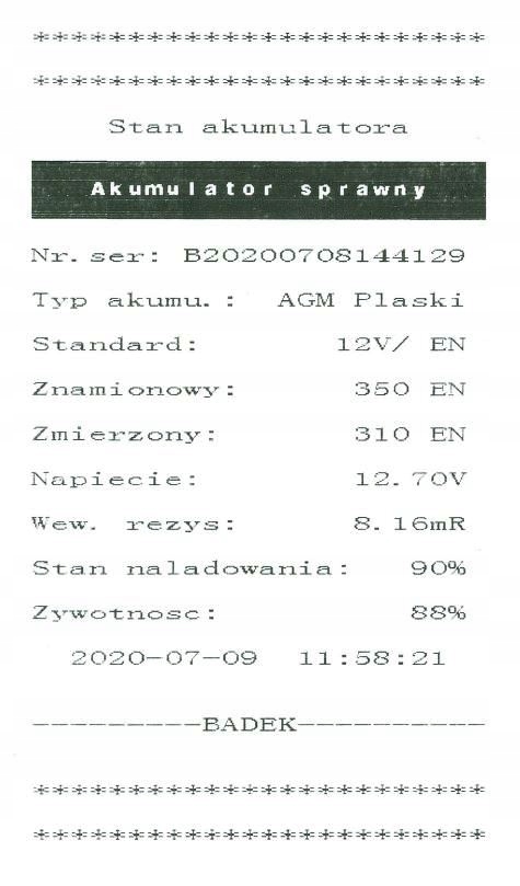 ⭐ ⭐ ⭐ ✅ ✅ Як результат тесту акумулятора, наведено значення фактичного струму запуску: