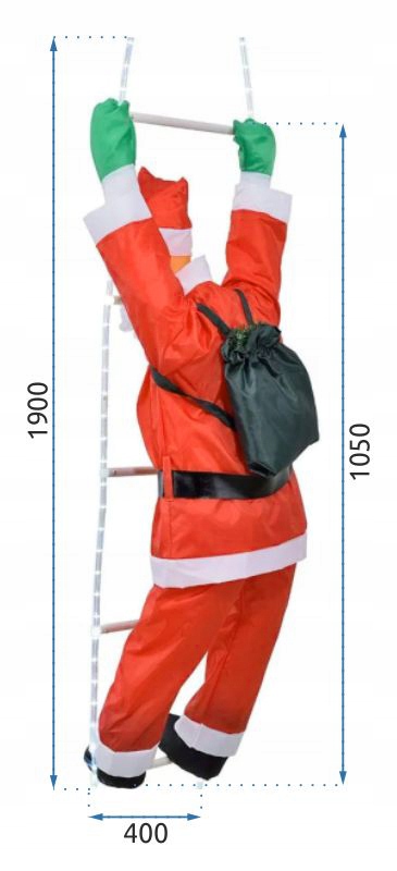- Загальні розміри (фігурка Діда Мороза + драбина): 190 см