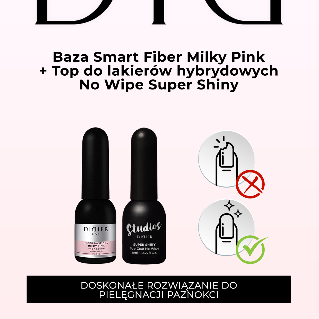DIDIER LAB SET HYBRID BASE FIBER MILKY PINK + TOP COAT SUPER SHINY