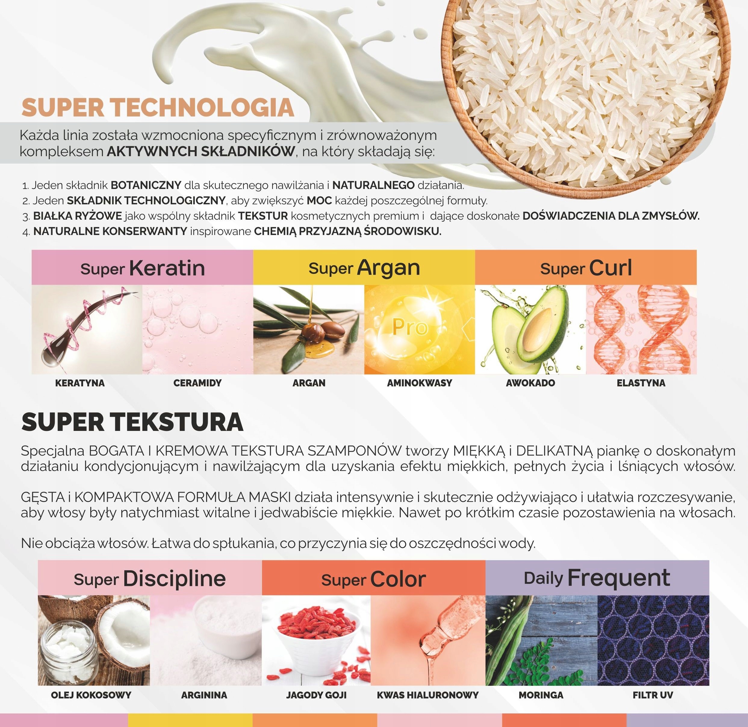 харчова маска для сухого, зневодненого та матового волосся з аргановою олією, маслом макадамія, амінокислоти та рис білок. Ефективно полегшує розчісування, інтенсивно живиться і швидко зволожує волосся, залишаючи його м'яким і блискучим. Це усуває фрізсне волосся, запобігає проникненню вологи проти антистатичного волосся IMA. Промийте ретельно.