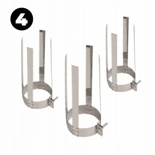 (4) КИСЛОТОСТІЙКІ ЗАЖИМИ використовуються для центрування та стабілізації вставки в кожусі димоходу.