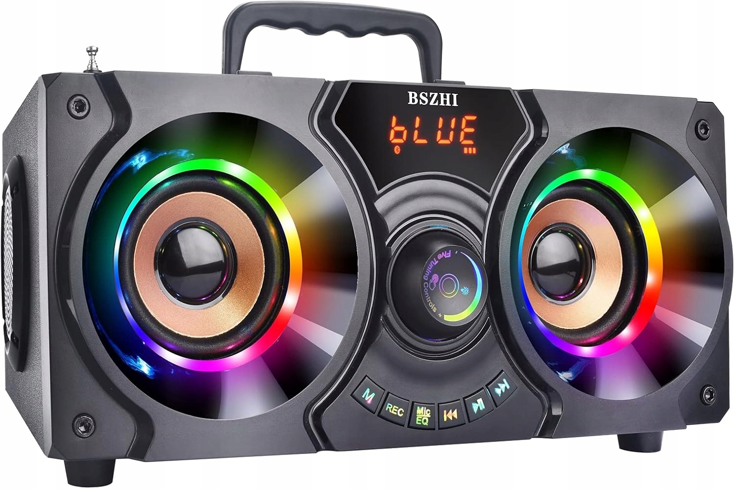 динамік Bluetooth для вечірок оснащений стрибками барвистими світлодіодами та миготливими вогнями, які додають динаміку музиці. Незвичайне освітлення ідеально підходить для сімейних зустрічей, садових вечірок та невеликих подій, що дозволяє повністю зануритися в музику та створювати активну атмосферу. Підтримує відтворення музики з USB -диска, має інтелектуальний пульт дистанційного керування та цифровий дисплей.