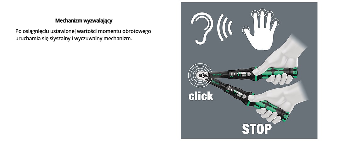 Динамометричний ключ унікального дизайну Wera. Дуже довговічна та висока точність відповідно до DIN EN ISO 6789-1:2017-07. Просте налаштування та захист значення за замовчуванням. Звуковий і тактильний фіксатор при досягненні значення шкали також полегшує впевнене встановлення потрібного крутного моменту. Потужний ударно-спусковий механізм спрацьовує чітко чутним і тактильним сигналом при досягненні встановленого крутного моменту. Для затягування за годинниковою стрілкою, з тріскачкою на 45 зубів. Динамометричний ключ Wera збагачений широким набором аксесуарів, створюючи ідеальний набір для кожного користувача. Набір включає: Динамометричний ключ Click-Torque A 6 ¼" 2,5 - 25 Нм, торцеві ключі 6 ¼", 11 насадок Hex-Plus для гвинтів із шестигранною головкою, хрестовиною PH- і TORX® з аксесуарами, включаючи подовжувач і адаптер.
