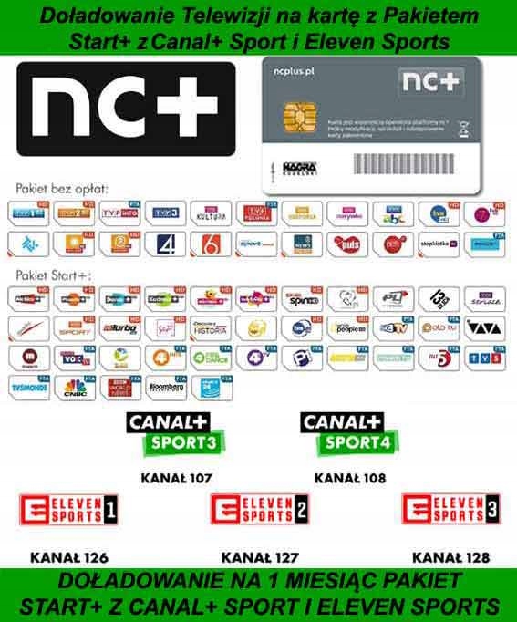 КАРТКИ ПОПОВНЕННЯ NC+ TNK START+ З CANAL+ SPORT ТА ELEVEN SPORTS НА 1 МІСЯЦЬ ВАРТІСТЮ 84 ЗЛ.