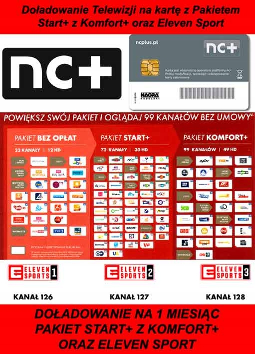 ПОПОВНЕННЯ NC+ TNK START+ КАРТКАМИ KOMFORT+ ТА ELEVEN SPORTS НА 1 МІСЯЦЬ ВАРТОЮ 69 ЗЛ.