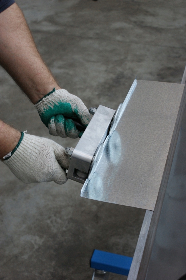 ручний інструмент для згинання краю аркуша з 90 до максимум 180 градусів. Як і вся "родина Бендера", інструмент характеризується дуже простою та інтуїтивно зрозумілою операцією. Вигини виготовляються шляхом вручну переміщення пристрою по краю аркуша, поступово збільшуючи кут вигину. Це дозволяє згинати аркуші будь -якої довжини. Пристрій не пошкоджує поверхні з лаком та покриттям. Технічні параметри: