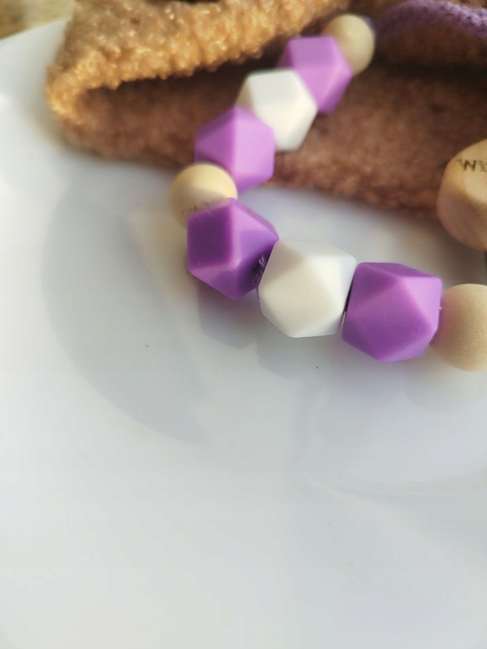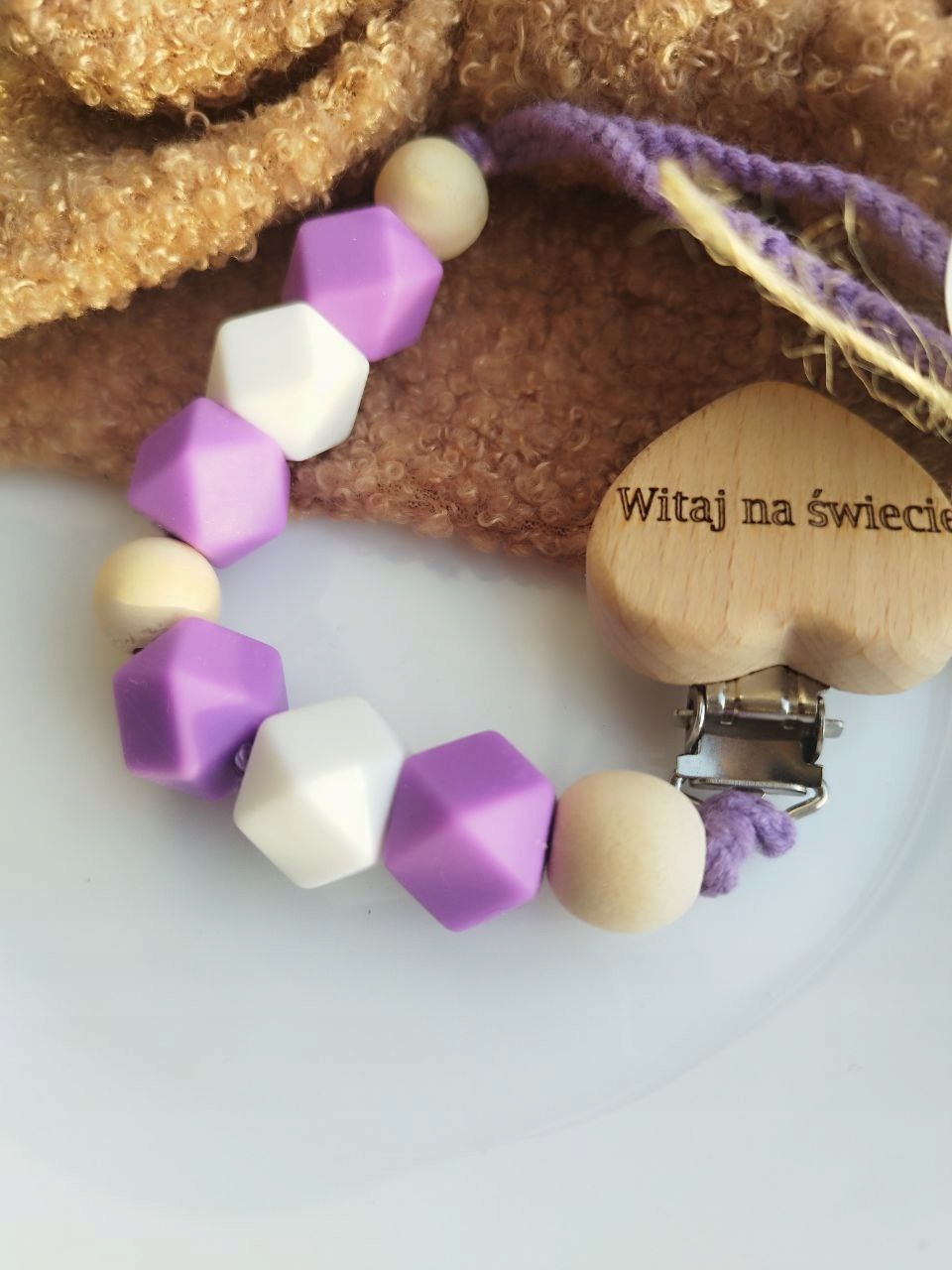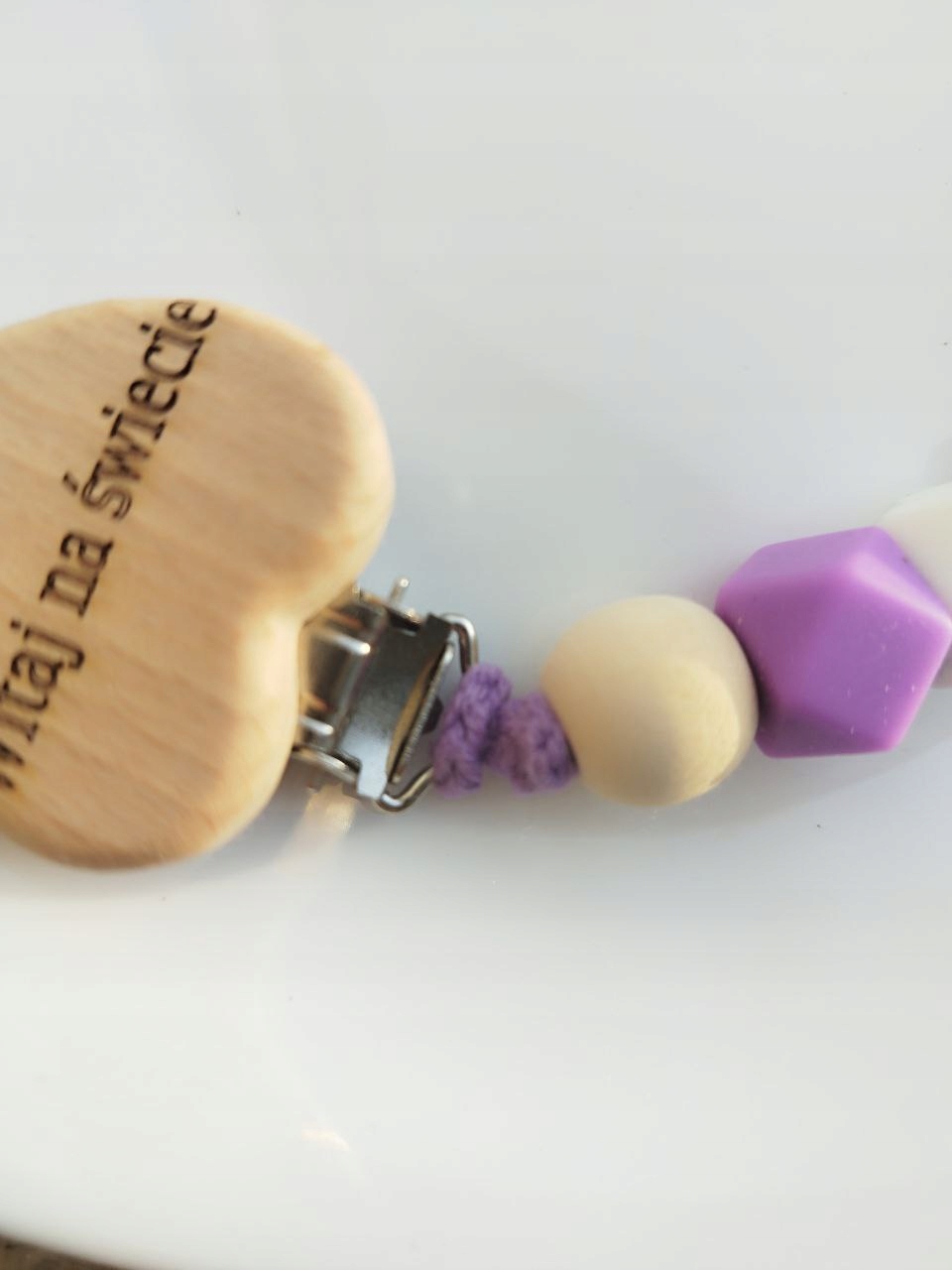 Предметом аукціону є персоналізована підвіска-пустушка або прорізувач. Підвіска з дерева та силікону. Шнурок пов'язаний гачком вручну. Це ручна робота, тому вона зроблена з обережністю.