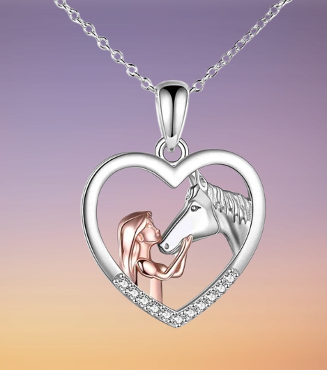 Дитяче намисто Кінь в сердечку Срібло Рожеве Миле Красиве