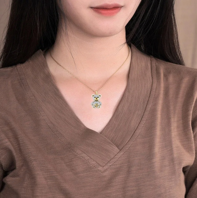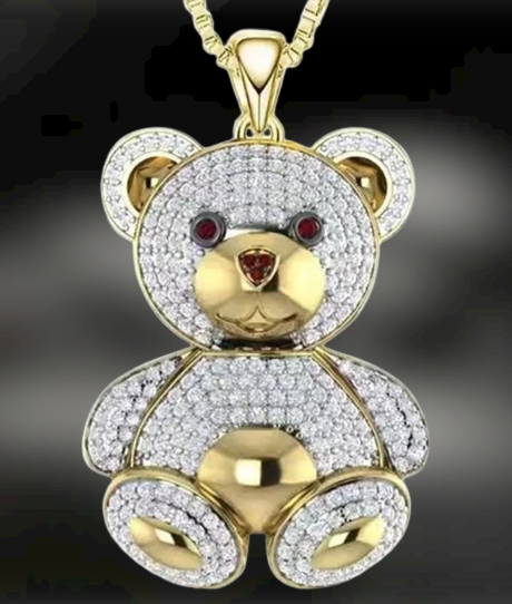 Дитяче намисто з ведмедиком, золоті циркони, красивий ланцюжок