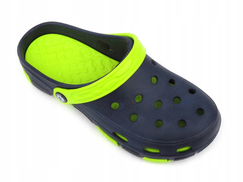 Дитячі шльопанці Realpaks виготовлені з легка піна темно-синього кольору з зеленими елементами.