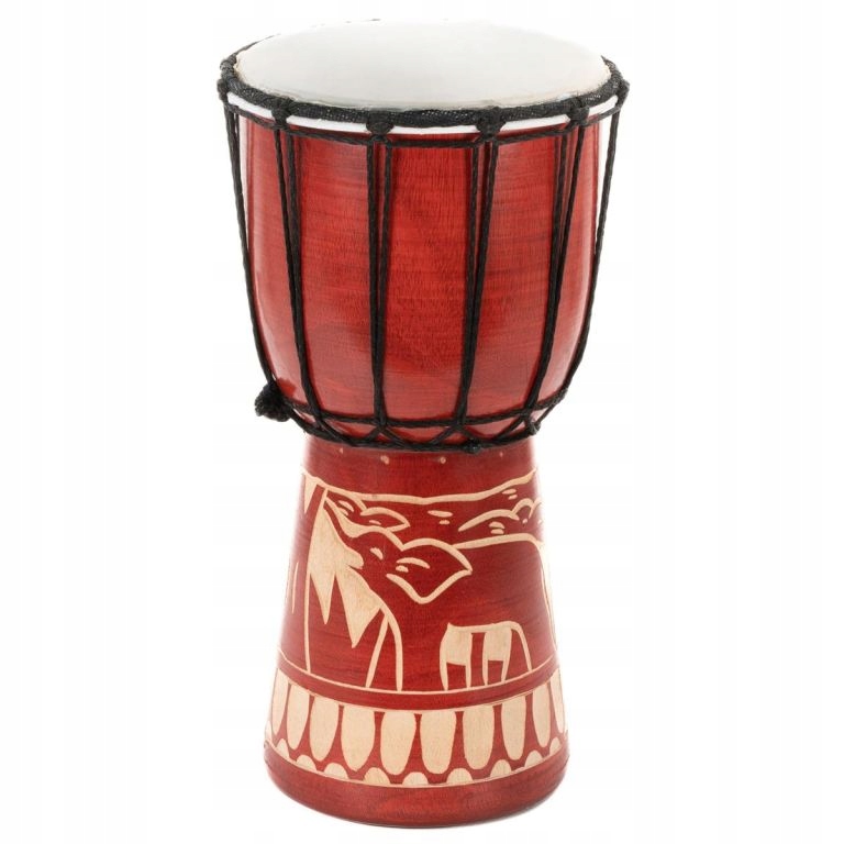 djembe -це барабан з дерева з червоного дерева з червоного дерева і покритий натуральною козячою шкірою. Інструмент підтримує розвиток ранніх рухових навичок та музичної освіти дітей, а також підходить як портативний джимбе на фестивалях. Нижня частина прикрашена традиційним, барвистим малюнком. Ідеально підходить для дітей від 3 до 6 років, він також може мати декоративну функцію у вітальні чи офісі. Це універсальний музичний інструмент, але він не призначений для професійного використання.