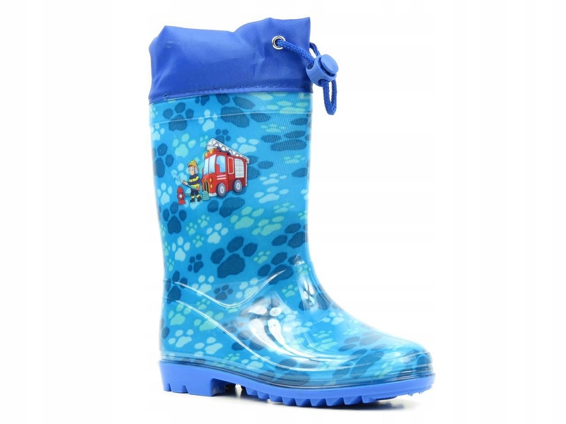 Веллі був вироблений брендом American Club . Взуття виготовляється з стійкого гумового матеріалу , завдяки якому вода вільно тече на них. Всередині є зручний текстильний матеріал . Підошва, завдяки своєму будівництву, запобігає неконтрольованому ковзанню. Галош у верхній частині верхівки має вознак, тож ви можете захистити ногу від потрапляння всередину води зверху. Зображення пожежника на взутті задовольнить багатьох малюків.