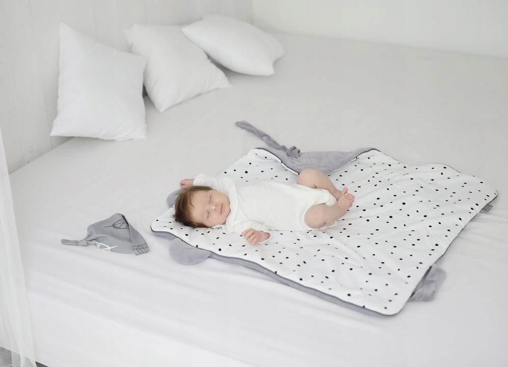 Виготовлена з найякісніших сертифікованих матеріалів. Зовнішня частина виготовлена з м'якого оксамиту, а всередині - 100% бавовна. Антиалергічне силіконове наповнення забезпечить дитині відповідну температуру тіла, тепло, м'якість і пухнастість. Завдяки краватці-метелику ви можете регулювати пов’язку дитини, роблячи краватку тугішою або вільнішою. Ви також можете використовувати цей виріб як ігровий килимок, пеленальний столик або ковдру для коляски чи люльки. Сповивання не має жорсткості на спині, що не рекомендується для новонароджених.