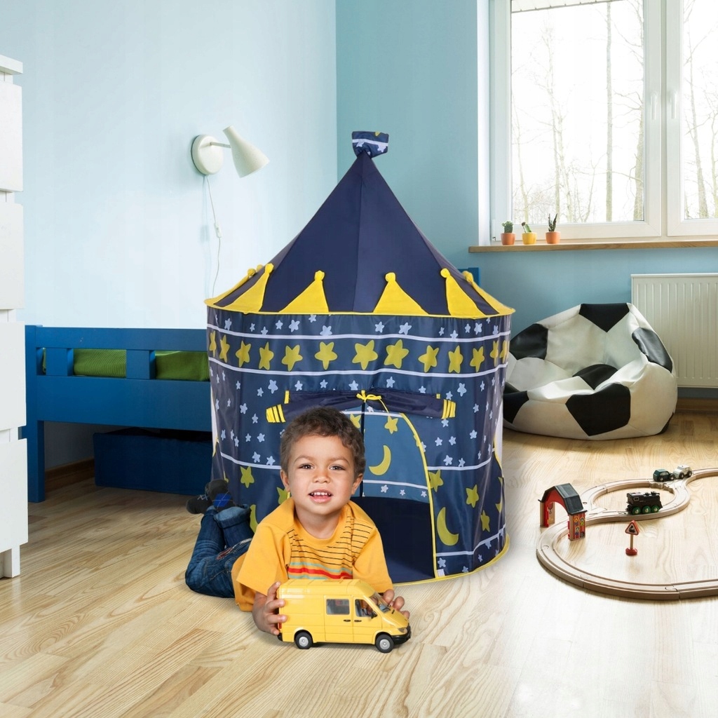 Ви хочете зробити свою дитину радістю і дати йому унікальний простір для гри? Цей темно -синій намет у формі Королівського замку - це куточок феї, в якому будуть створені найкрасивіші дитячі історії - як вдома, так і на вулиці!