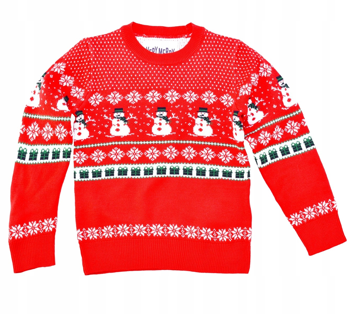 дитячий різдвяний светр з сніговиками - червоний