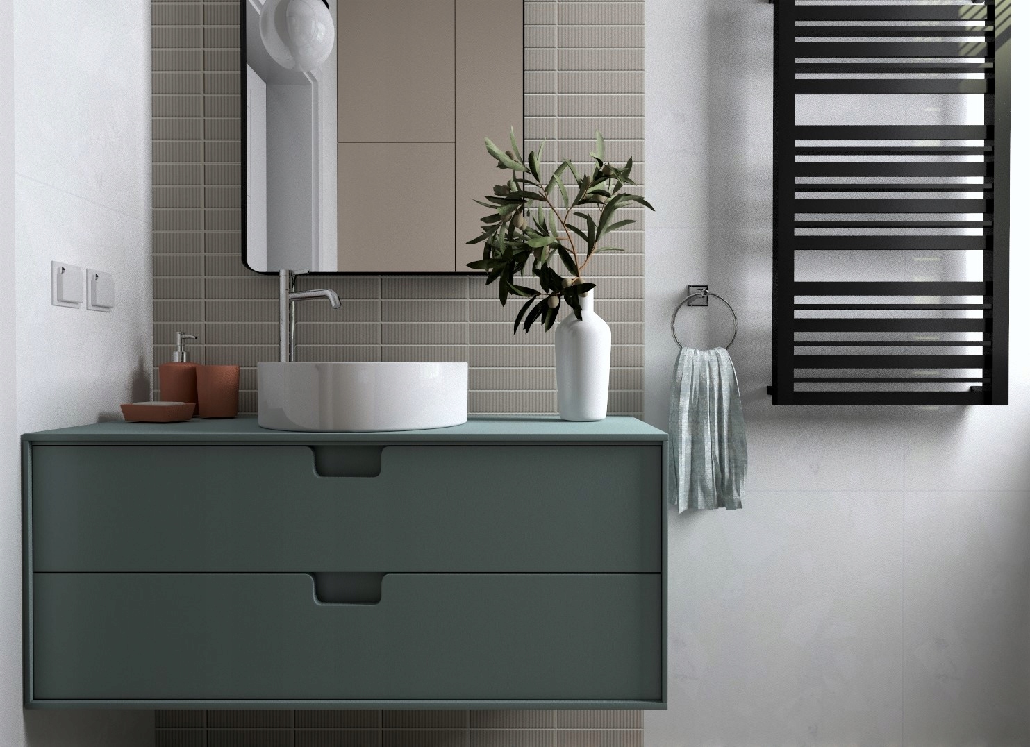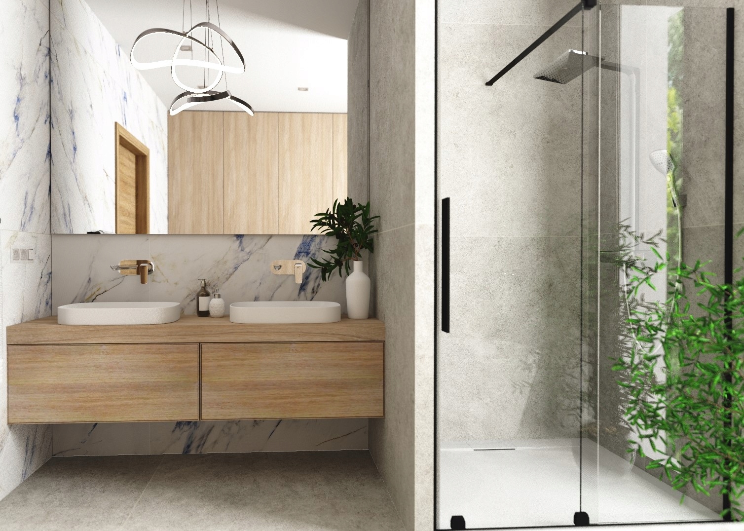 - Дизайн ванної кімнати не передбачає переміщення, руйнування стін чи облаштування систем, таких як газ, сантехніка, вентиляція чи електрика, і не є виконавчим проектом.