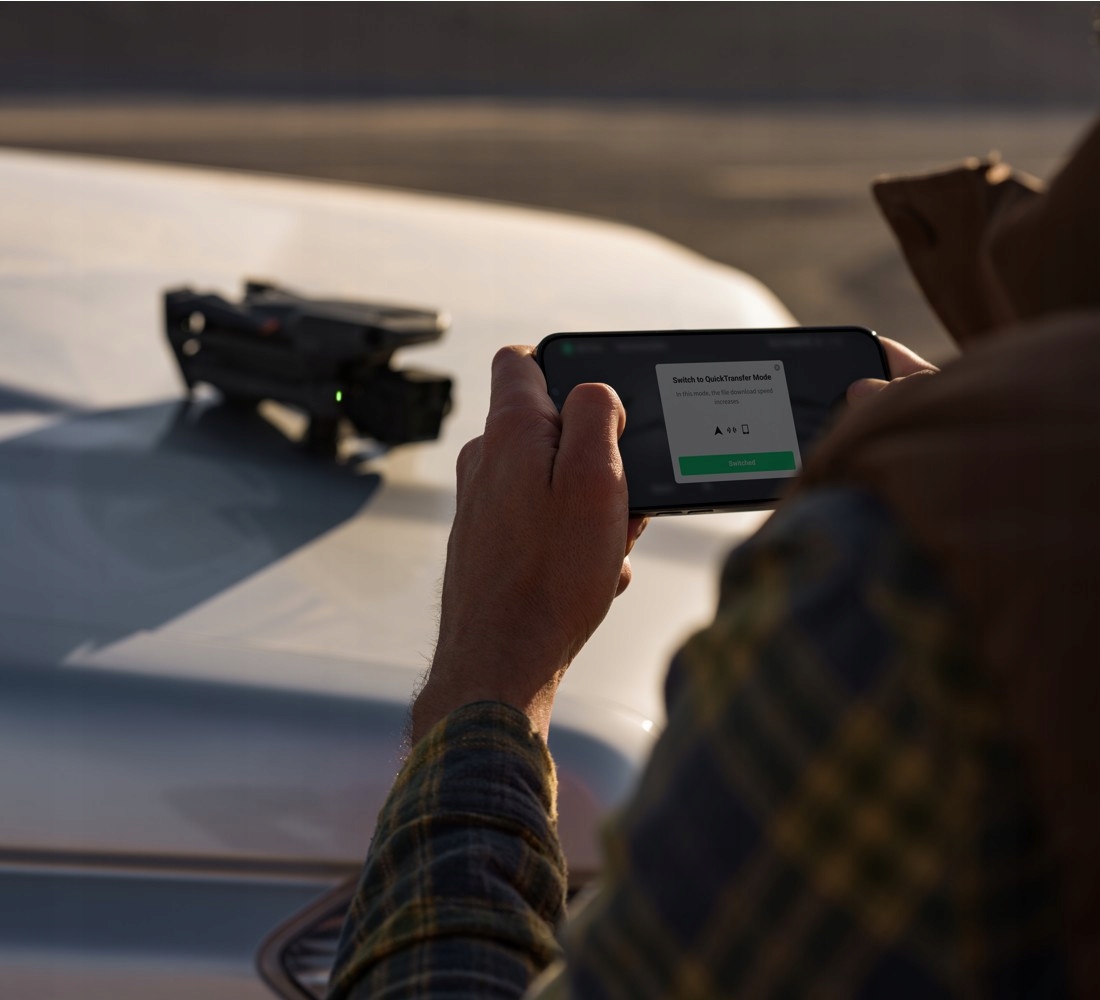 На довгих дистанціях ви можете використовувати функцію круїз-контролю або планувати маршрут на основі попередньо встановлених точок. Створюйте складні знімки лише кількома клацаннями за допомогою MasterShots і QuickShots, а також приголомшливо деталізованих панорам 100 Мп. Також доступні режими відстеження FocusTrack (ActiveTrack 5.0, Point of Interest і Spotlight). Ви можете швидко перенести зібрані матеріали в пам'ять смартфона за допомогою функції High-Speed QuickTransfer. Ви також можете підключити дрон до програми LightCut на своєму пристрої, щоб переглядати записані матеріали та швидко їх редагувати за допомогою штучного інтелекту, не зберігаючи їх у пам’яті телефону.