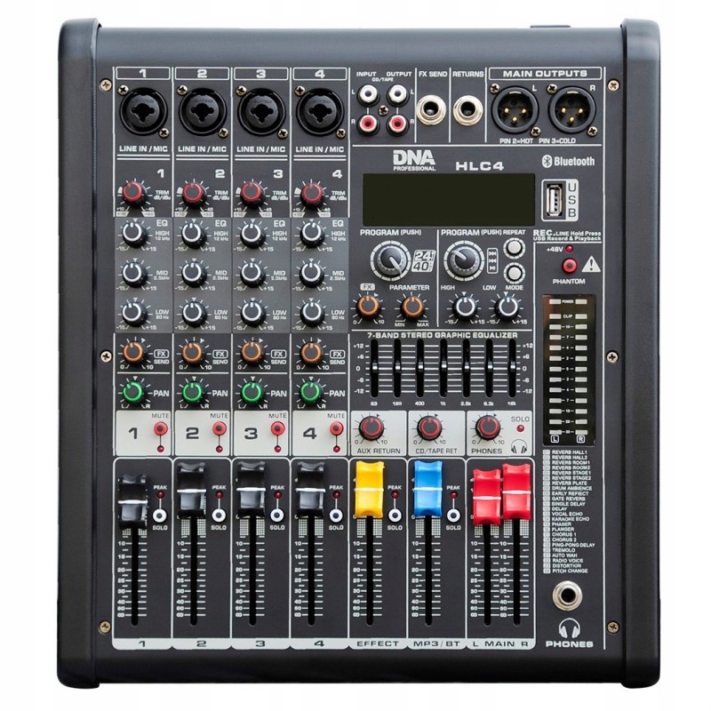 DNA HLC 4 - це професійний аналоговий аудіомікшер , оснащений чотирма вхідними каналами, передпідсилювачами високого класу, портом USB з функцією MP3 і стандартом бездротового зв'язку Bluetooth. Обладнання ідеально підходить як сценічний мікшер під час невеликих концертів і сценічних виступів, у репетиційних залах, а також у домашній студії звукозапису.