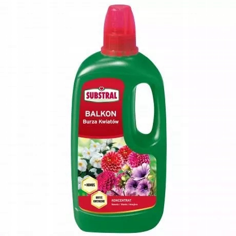 SUBSTRAL Flower Storm містить ретельно підібрану композицію калію і фосфору, яка підтримує утворення бутонів і подовжує цвітіння балконних рослин. Особливо рекомендується для сурфіній і герані. Ковпачок полегшує дозування добрива.