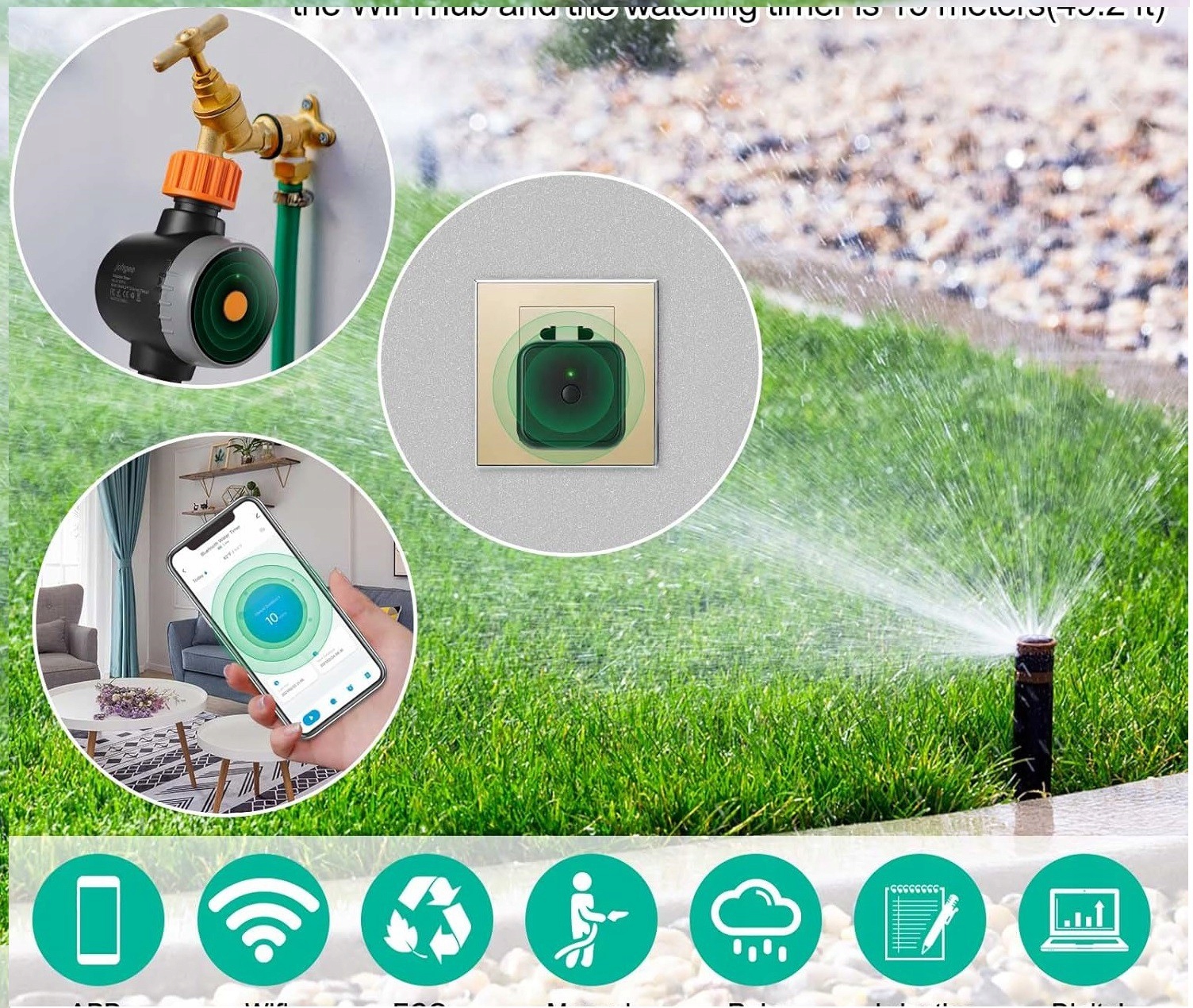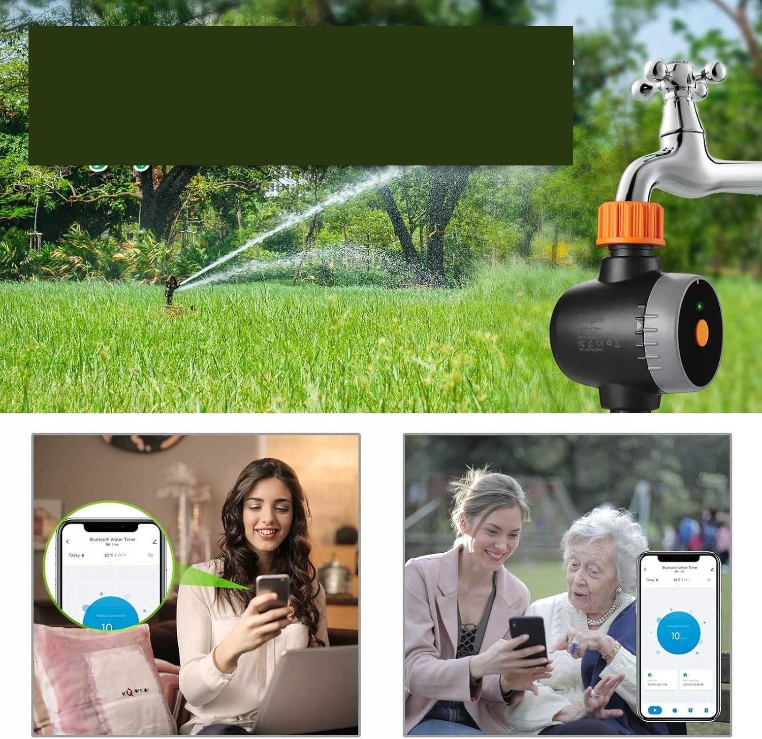 Система поливу, керована програмою, полегшує догляд за вашим садом. Включає таймер дощувача та інтелектуальний шлюз (Wi-Fi хаб), який дозволяє керувати зрошенням за допомогою програми (доступна для Android та iOS).