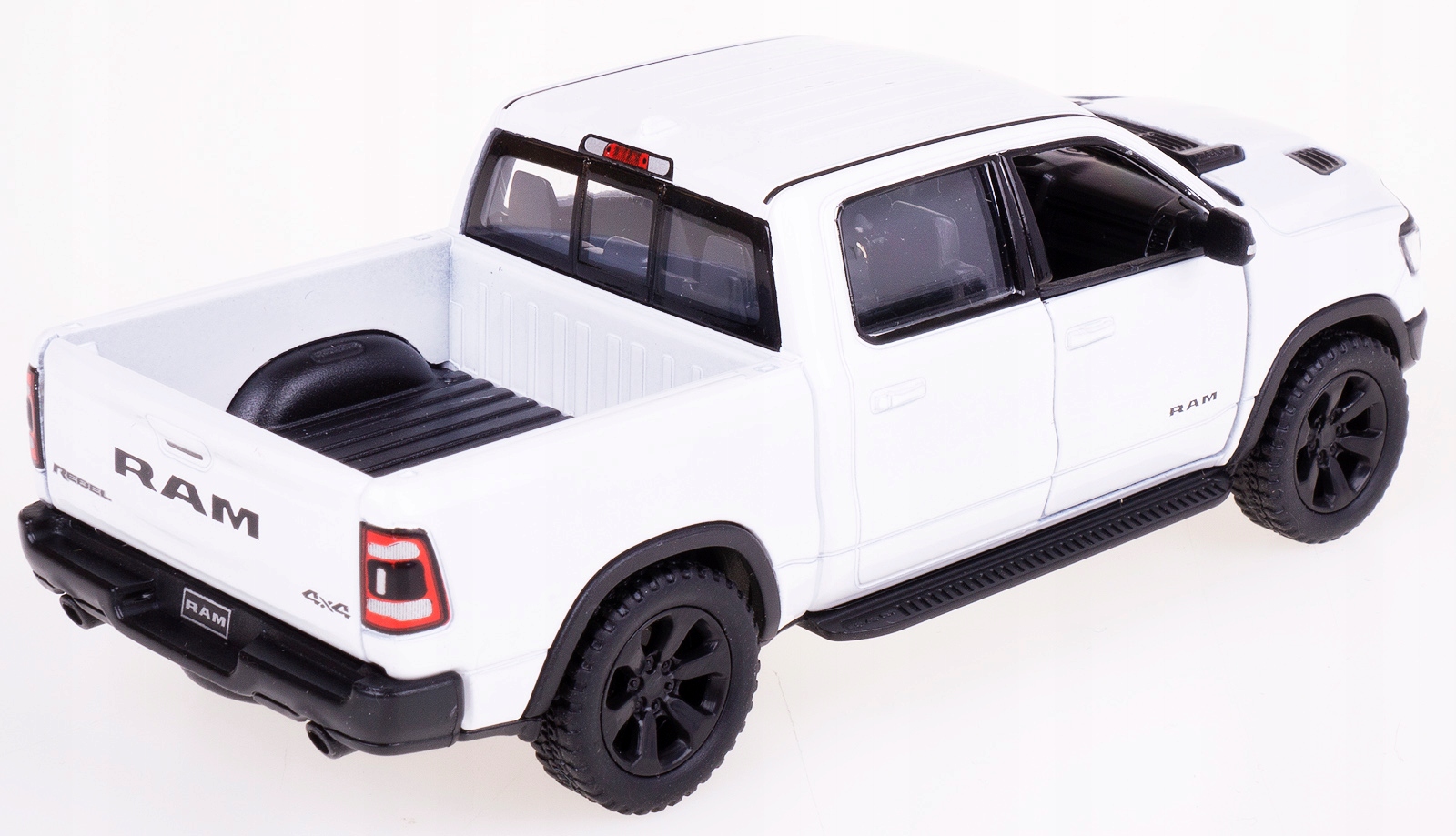 Металева модель DODGE RAM 1500 в масштабі 1:46 з приводом "Pull Back". Модель виготовлена з металу та пластику. Має задні люки, що відкриваються, і бічні дверцята, через які можна зазирнути всередину моделі. гумові шини.