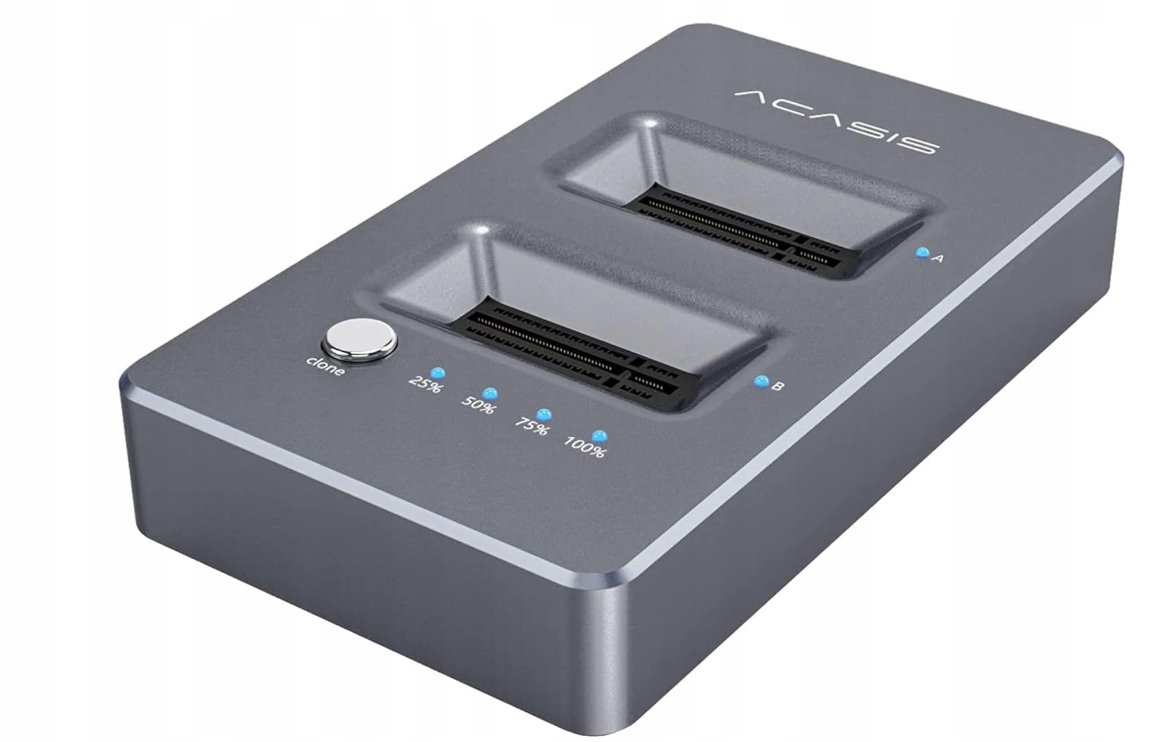 Acasis nvme M.2 Dulpita - це сучасний і надійний пристрій, який дозволяє швидко клонитися дані між двома SSD NVME M.2 SSD - повністю офлайн, без необхідності підключення комп'ютера. Все, що вам потрібно, -це кілька секунд, щоб почати копіювати, і весь процес відбувається швидко і не має. На додаток до функції дупменту, обладнання можна використовувати як двоколірну док -станцію, що значно збільшує місце для диска у вашому робочому середовищі чи домашньому офісі. Пристрій не сумісний з SSD SSD та дисками NVME з тепловими раковиками.