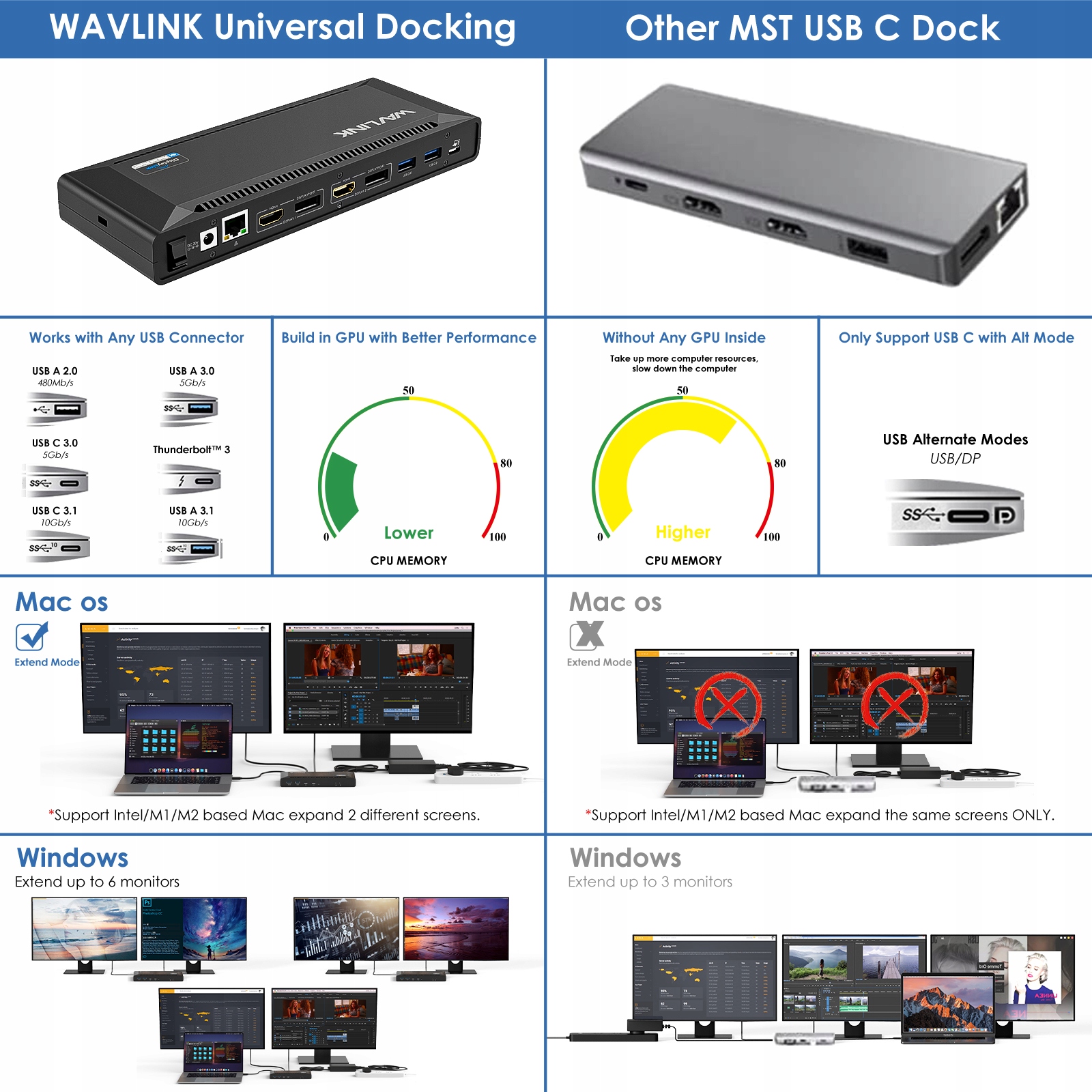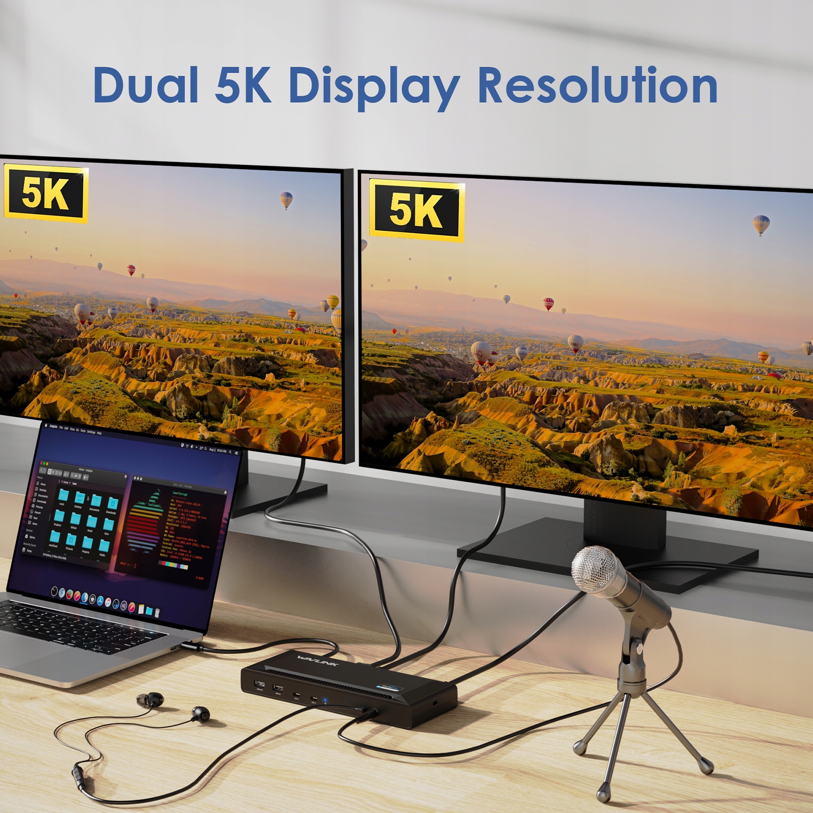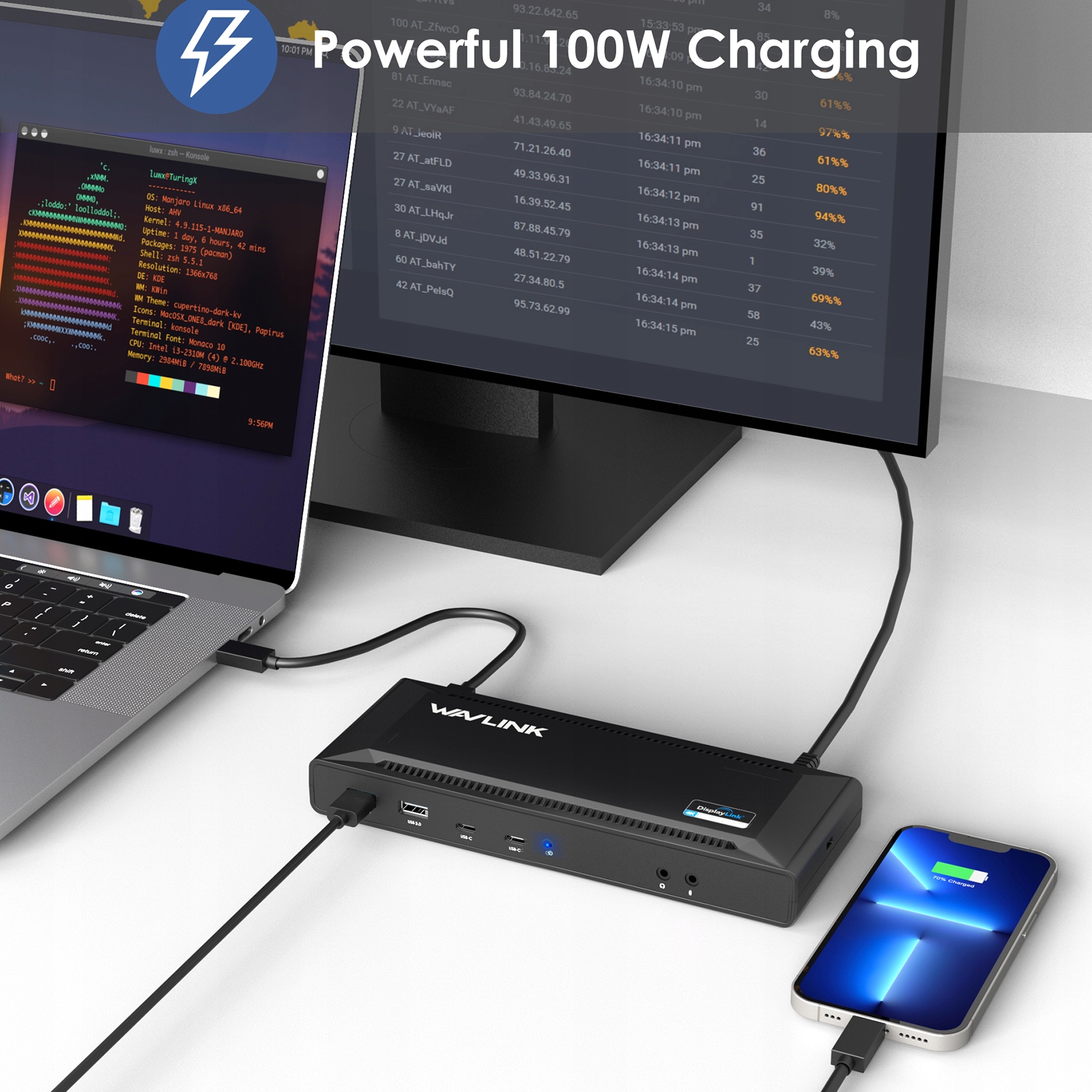 Док-станція Wavlink USB C dual 4K — це багатофункціональна док-станція для ноутбука 15-в-1, яка пропонує широкий спектр варіантів підключення та підтримує подвійну - розширення екрана, що робить його ідеальним рішенням для підвищення продуктивності та зручності. Док-станція має кілька відеоінтерфейсів, порт USB-C для високошвидкісної передачі даних, багатофункціональний порт USB, порт Gigabit Ethernet і функцію заряджання PD тощо, що забезпечує зручне підключення та ефективну багатозадачність.