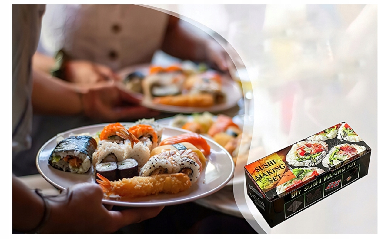*Цей набір містить усі елементи, необхідні для приготування суші самостійно! і стисніть довгу трубку з готовим рулоном! кілька хвилин.