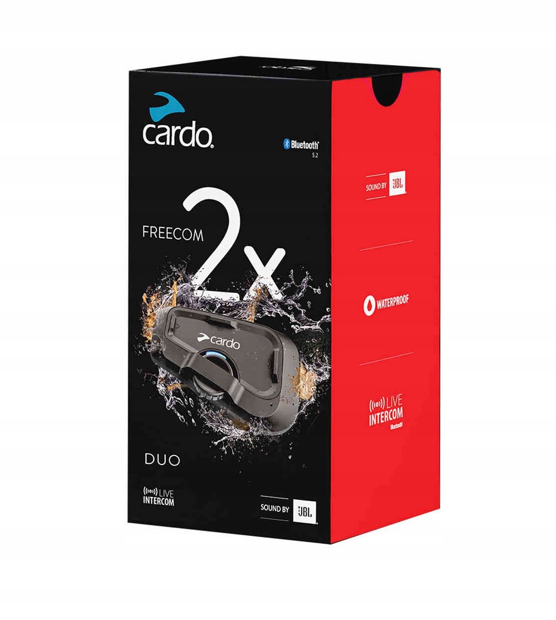 Bluetooth-гарнітура з домофоном із радіусом дії до 800 м між 2 користувачами Оснащений 40-міліметровими динаміками від JBL і підтримкою голосових підказок, Freecom 2x містить усі функції, які бажає вимогливий мотоцикліст. Крім того, він має функцію Live Intercom, яка гарантує автоматичне з’єднання Bluetooth для чотирьох користувачів із кристально чистим звуком.