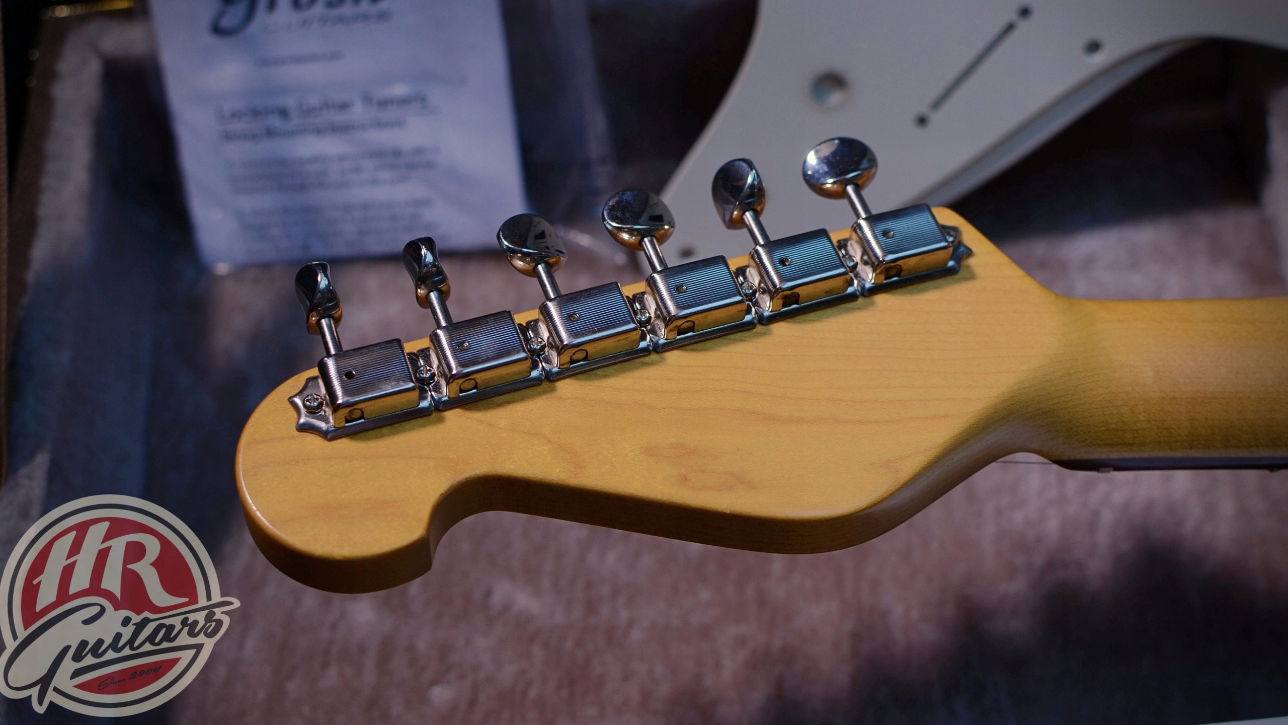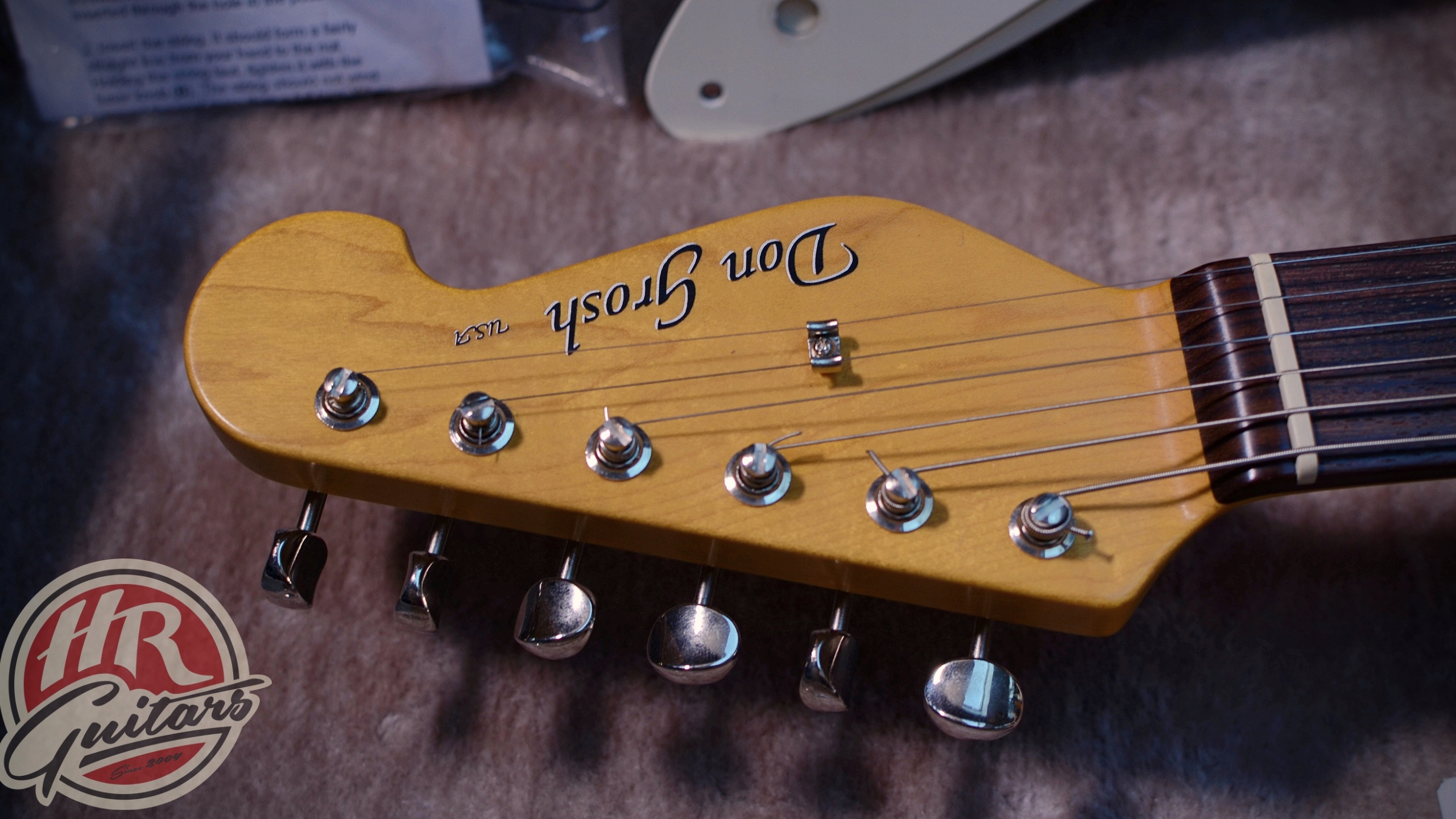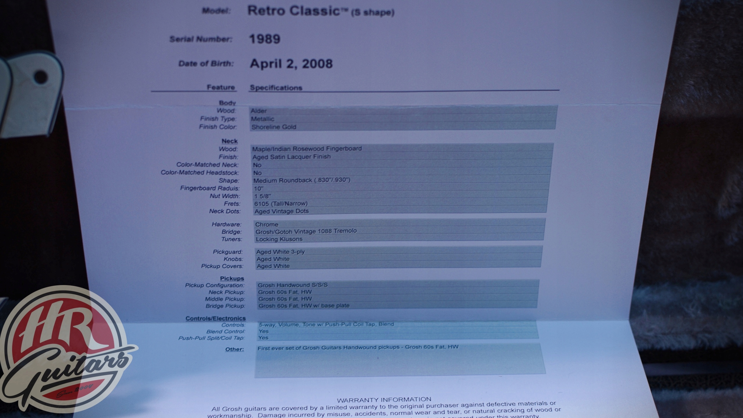 Фантастичний бутик DON GROSH Retro Classic, виробництва США 2008 року. Гітара в оригінальному стані. Корпус вільха, гриф клен з накладкою з палісандра. Радіус 10". Тюнери блокують Kluson, бридж Gotoh 1088 Vintage Tremolo. Колір гітари - Shoreline Gold. Звукознімачі під назвою Grosh 60s Fat. У комплект входить жорсткий кейс, документи та додаткові пікгарди. Видатна гітара, звучить і виглядає фантастично. Я настійно рекомендую це та запрошую вас випробувати.