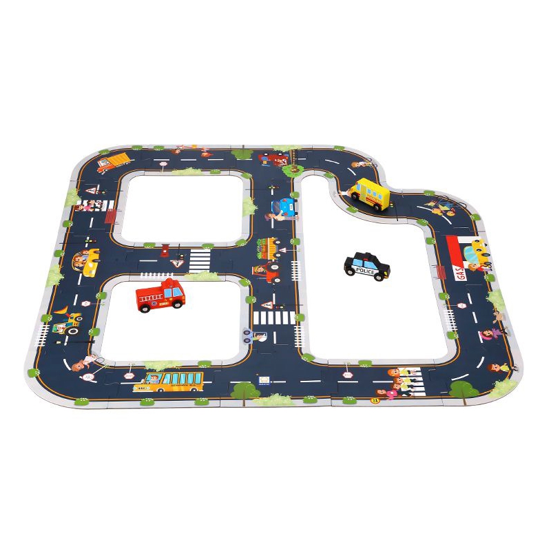 - Пазли «Шосе» від бренду TOOKY TOY збагатять задоволення вашої дитини. У набір входить 20 пазлів і буклет із зразками візерунків для складання. Пазли зображують вулицю та її найважливіші елементи, такі як знаки та міський рух. Дорога після будівництва дуже велика, до 82,5 х 82,5 (см). Елементи допускають різні варіанти планування вулиць. Дитина може уявити, що таке міське життя, і звикнути до нього. Дошка може бути ідеальним доповненням до блоків, з яких можна побудувати решту елементів міста.