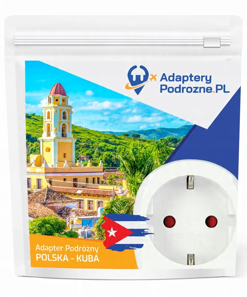 Дорожній адаптер POLAND - CUBA дозволяє безпечно підключати електрообладнання (телефон, фен, плойку, бритву) до електричної мережі під час поїздки на Кубу.