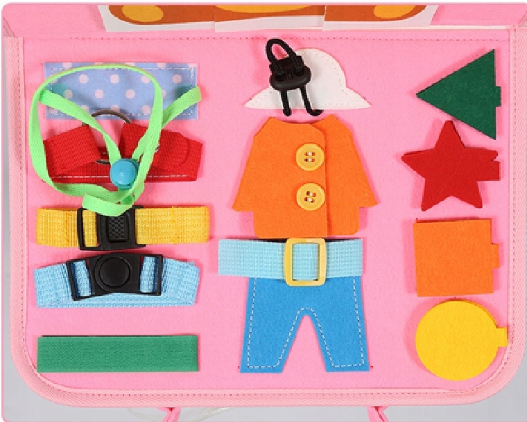 Сумка містить різні предмети (застібки, ґудзики, блискавки тощо), які є повсякденним життям дорослих > b>. Дитині, однак, це речі, які їй потрібно навчитися.