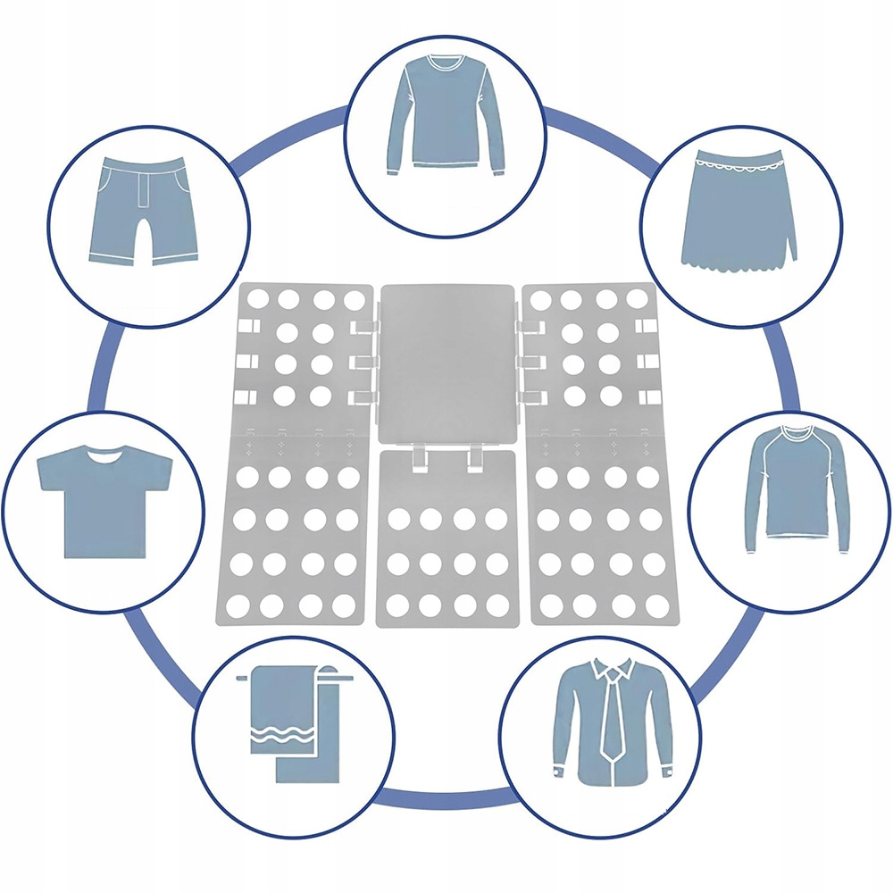 - дуже проста система одягу, придатна майже для всіх типів одягу, таких як сорочки, футболки, светри, штани, рушники та багато інших. складка заощаджуйте місце та зберігайте більше одягу.