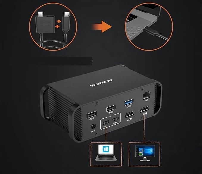 Док-станція AUIMCE для MacBook Pro Dual Monitor Hub USB C 14 W 2