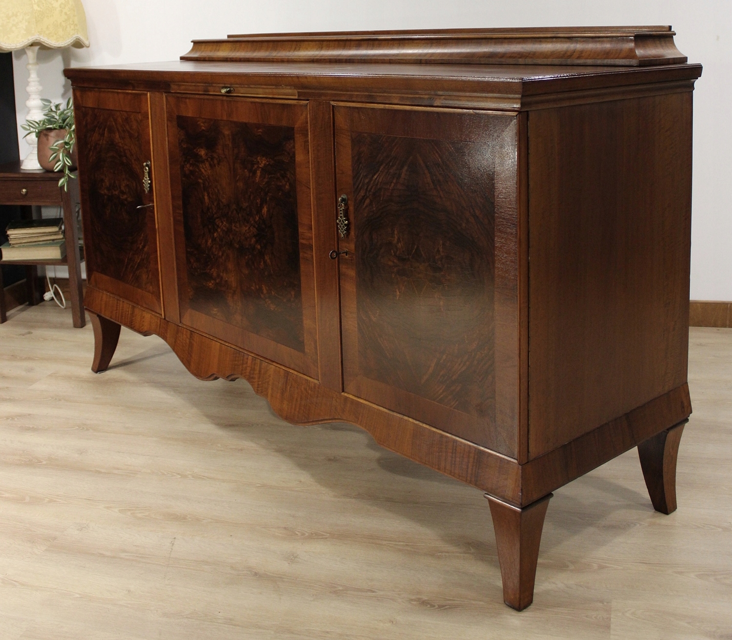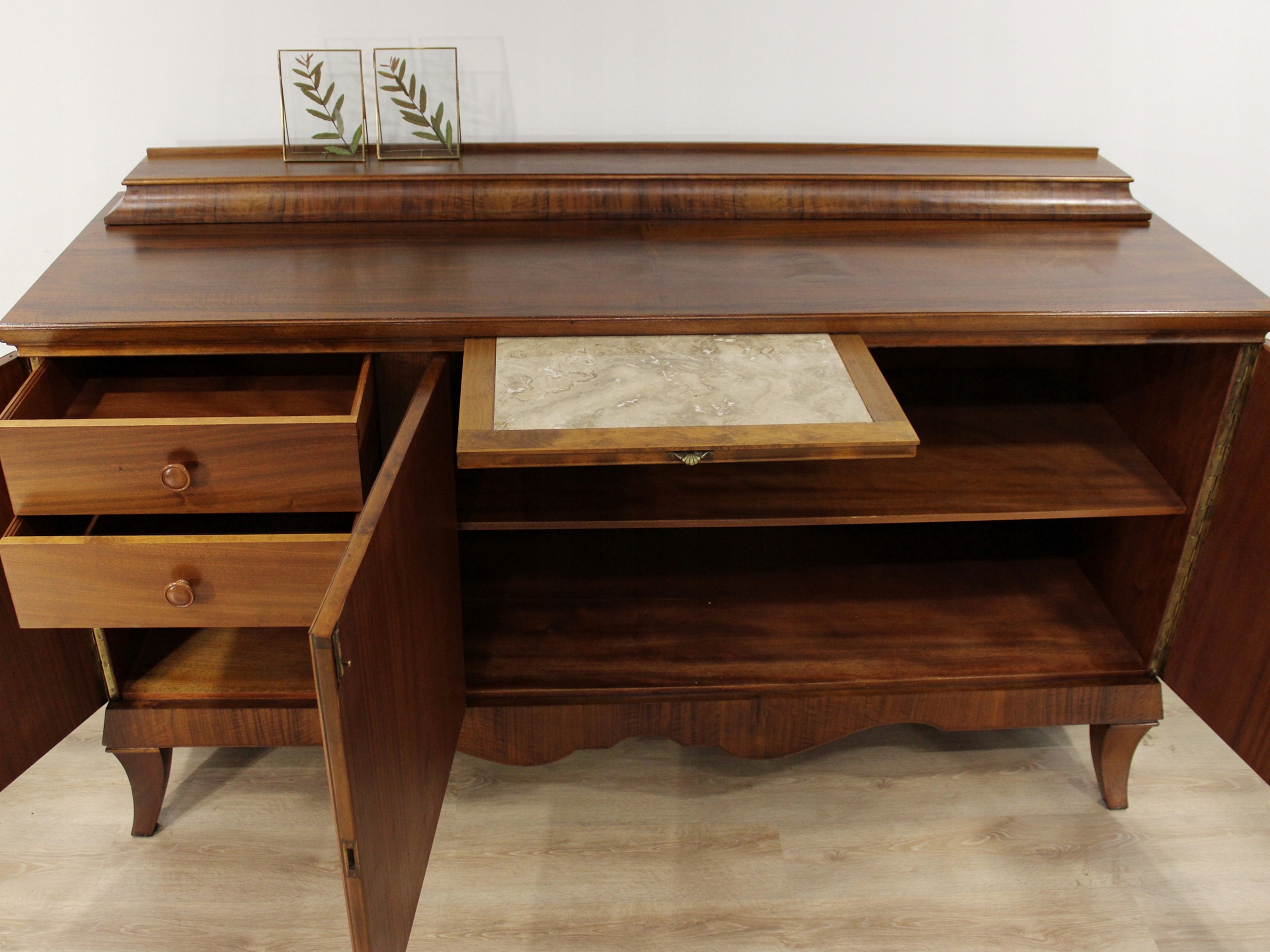 довгий комод у стилі арт-деко з горіхового дерева