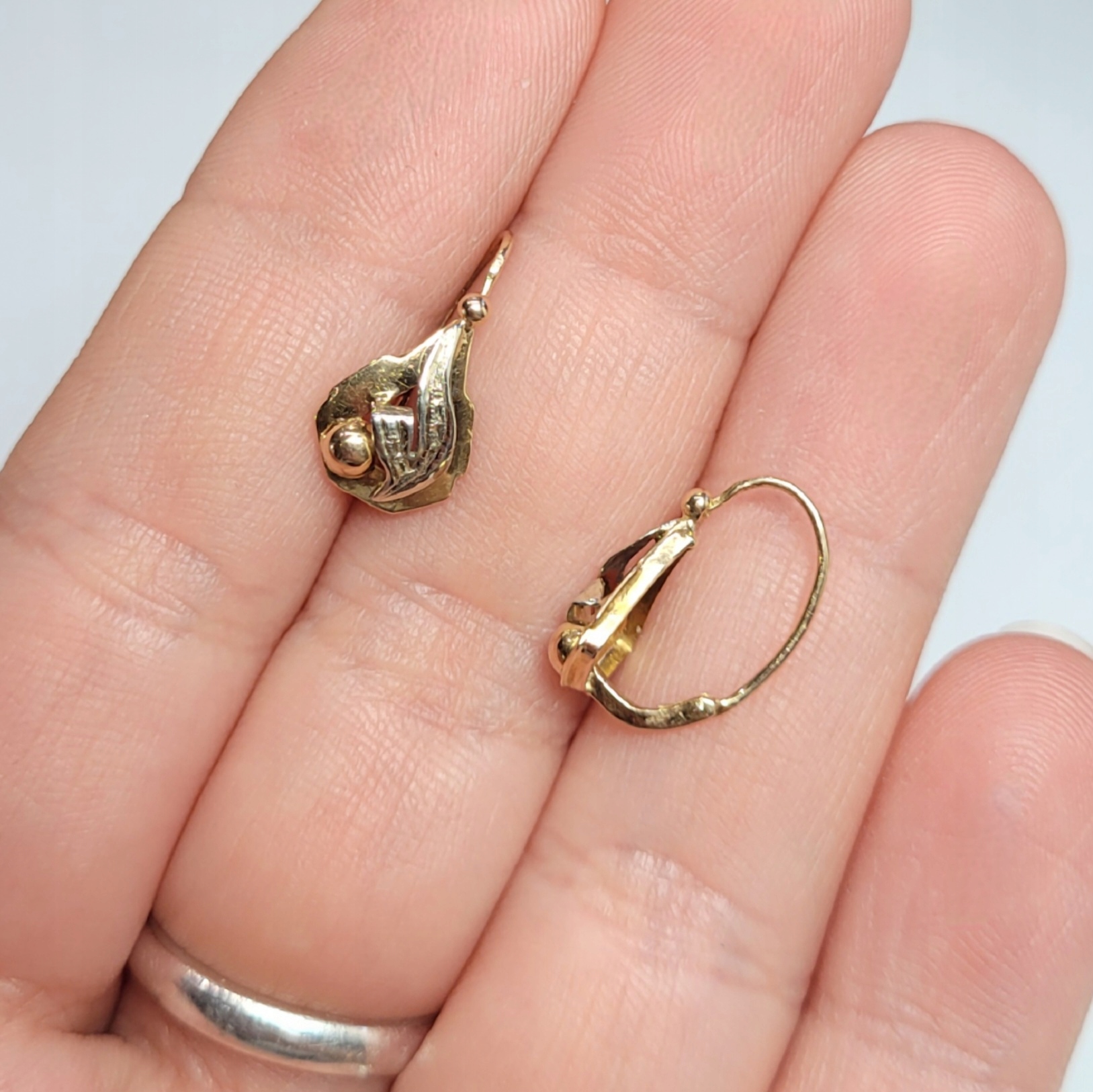 Довоєнні сережки із золота 0,750, ніжні, двоколірні, застібаються спереду