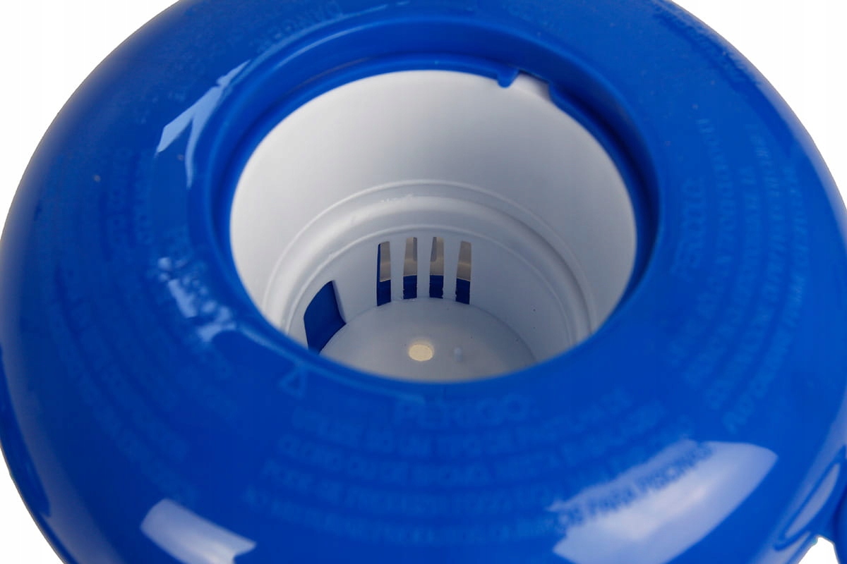 - ДОЗУВАЛЬНЕ КІЛЬЦЕ –Дозатор хлору має спеціальну регульовану ручку, яка дозволяє нам контролювати випуск хімікатів (таблетки не входять). Цей поплавок дозує хімічні таблетки діаметром 2,5 см.