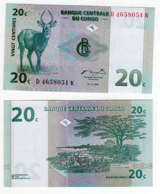 ДР КОНГО 1997 20 СЕНТИМІВ