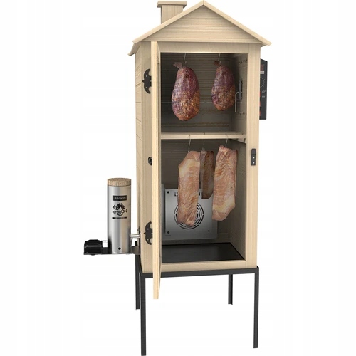 - Ефективний електричний насос із регулюванням потоку повітря, що оптимізує ефективність спалювання деревної тріски - забудьте про підвішування деревної тріски! Завдяки розміщенню насоса на спеціальній монтажній основі вібрації, які створює насос, передаються безпосередньо в камеру згоряння, покращуючи падіння стружки під час процесу відпалу. Ефективність насоса можна регулювати за допомогою ручки, регулюючи кількість диму відповідно до потреб і обсягу коптильні.