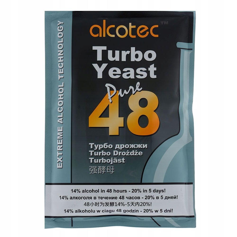 Дистиляторні дріжджі Alcotec 48 — це суміш сильних і швидких штамів дріжджів. Вони за 2 дні перероблять 6 кг цукру - 14% затору, а за 5 днів 8 кг цукру - 20% затору. Чисті дріжджі виробляють дуже чистий алкоголь із м’яким смаком.