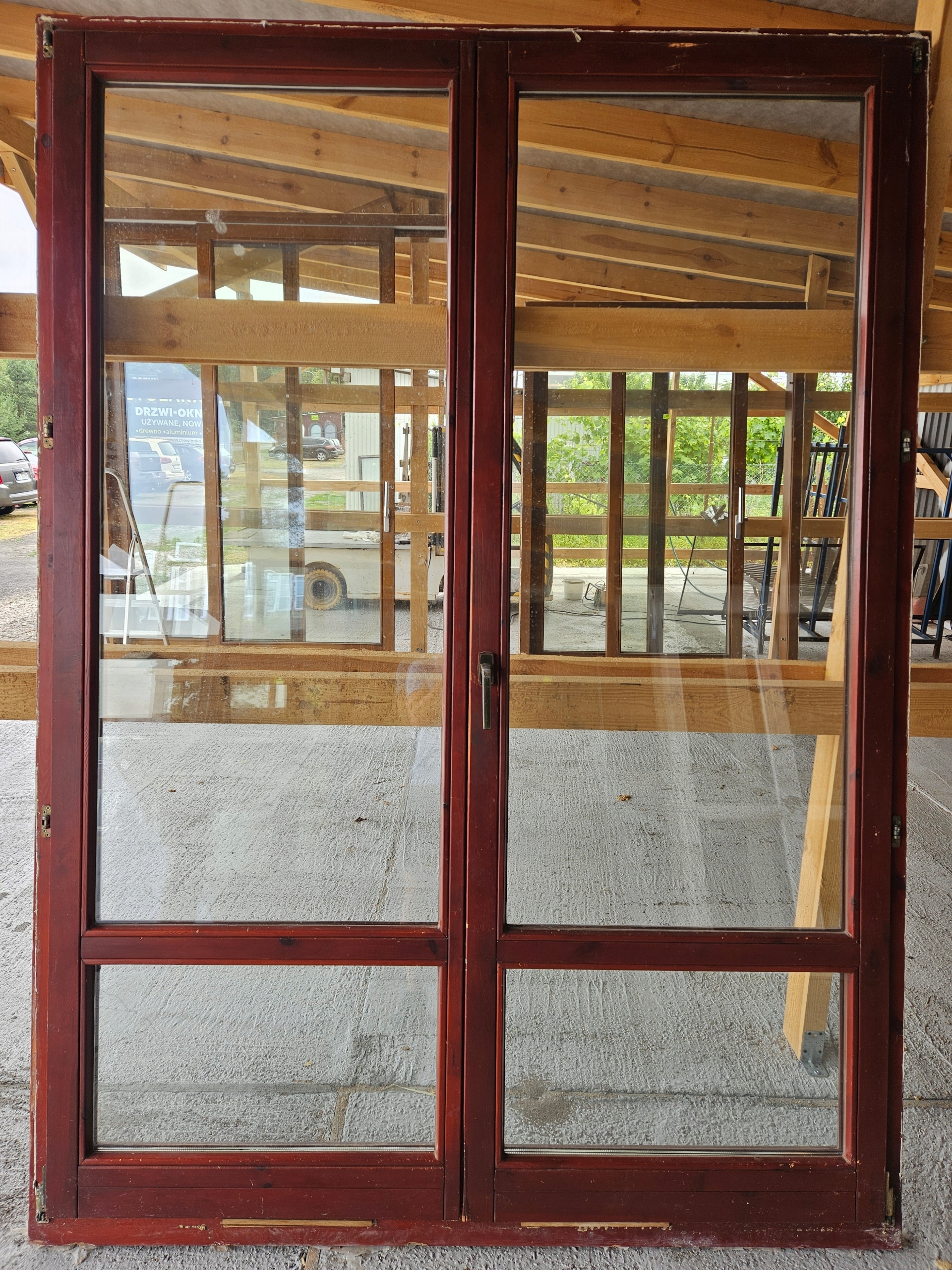 DRZWI/OKNO Balkonowe Drewniane Sosnowe Dwuskrzydłowe 177x245cm