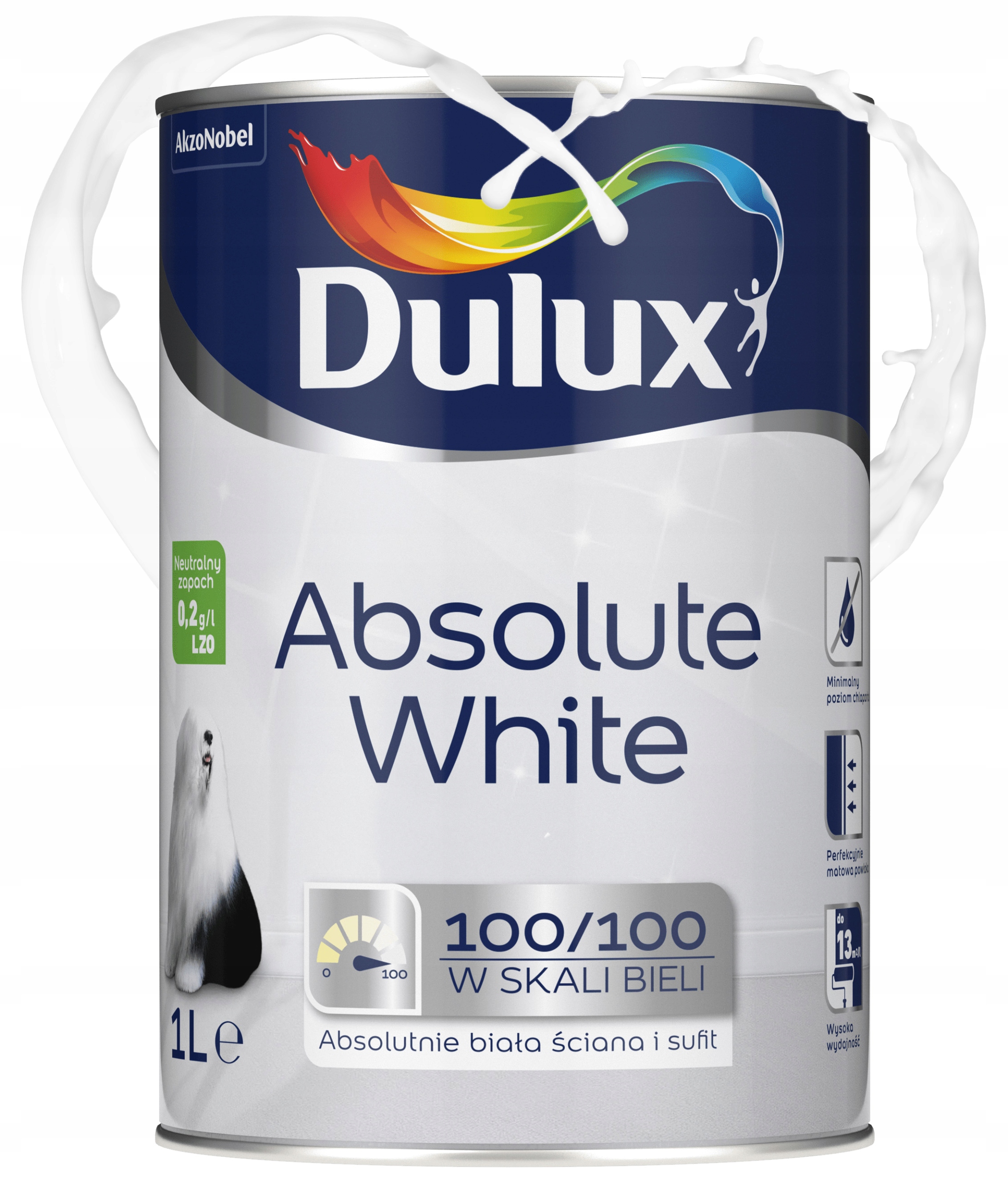Dulux Абсолютна біла фарба для стін і стелі 1L