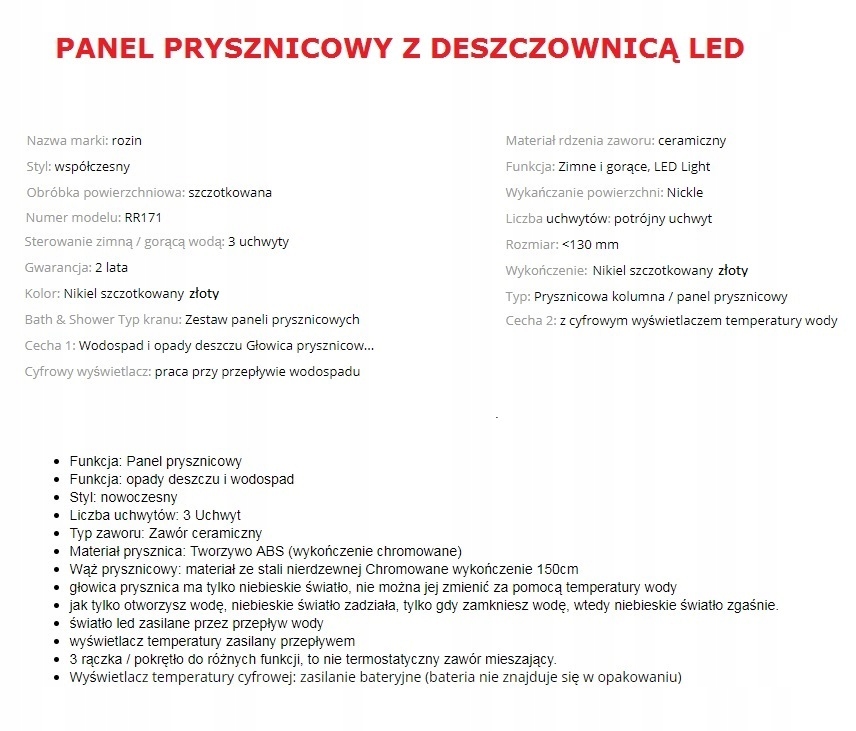 Душова панель зі світлодіодним тропічним душем рожевого золота