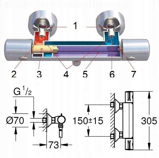 Попередній малюнок принципу роботи термостатичного змішувача: