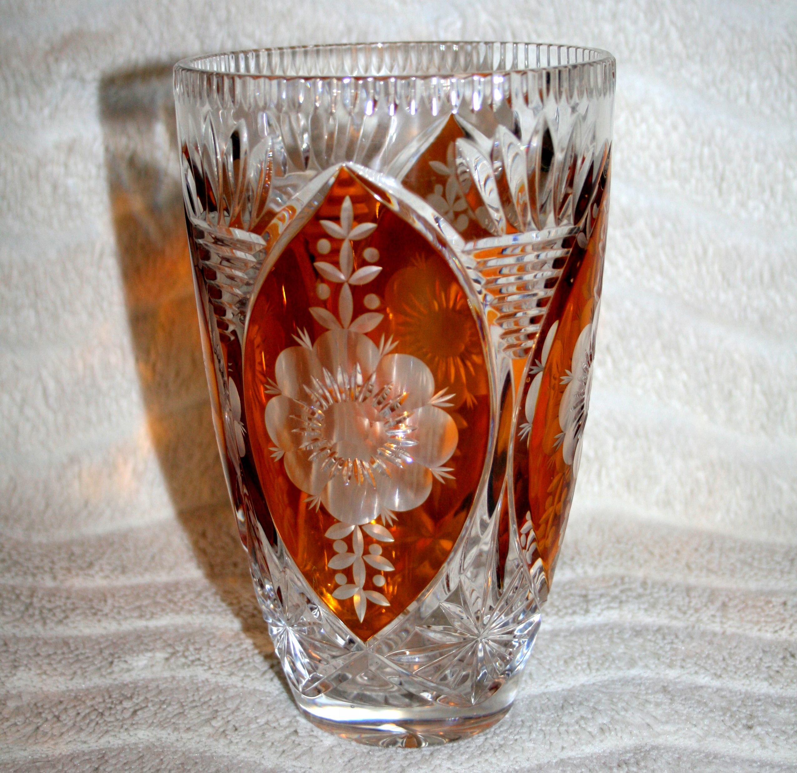 KRYSZTAŁ WAZON KRYSZTAŁOWY SZKŁO VINTAGE GLAMOUR BURSZTYNOWY