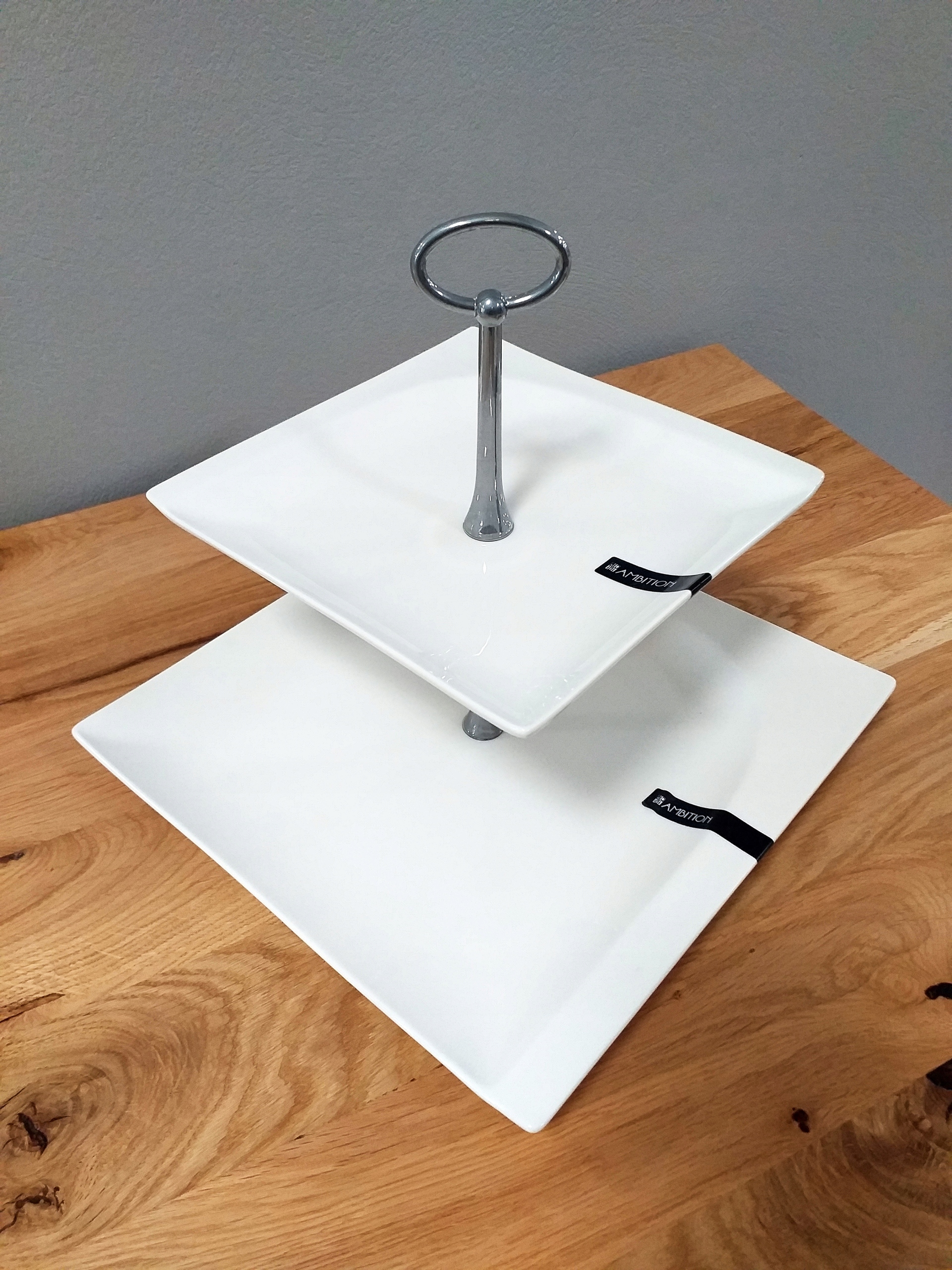 monaco two -Vele patera -це чудовий спосіб надати ефективні торти, печиво та фрукти. Ідеально підходить для зустрічей з близькими людьми і буде чудово виглядати на столі. Patera має стильну ручку, яка полегшує перенесення. Амбіція Patery доповнюється посудом, завдяки якому ви впевнені в елегантних делікатесах.