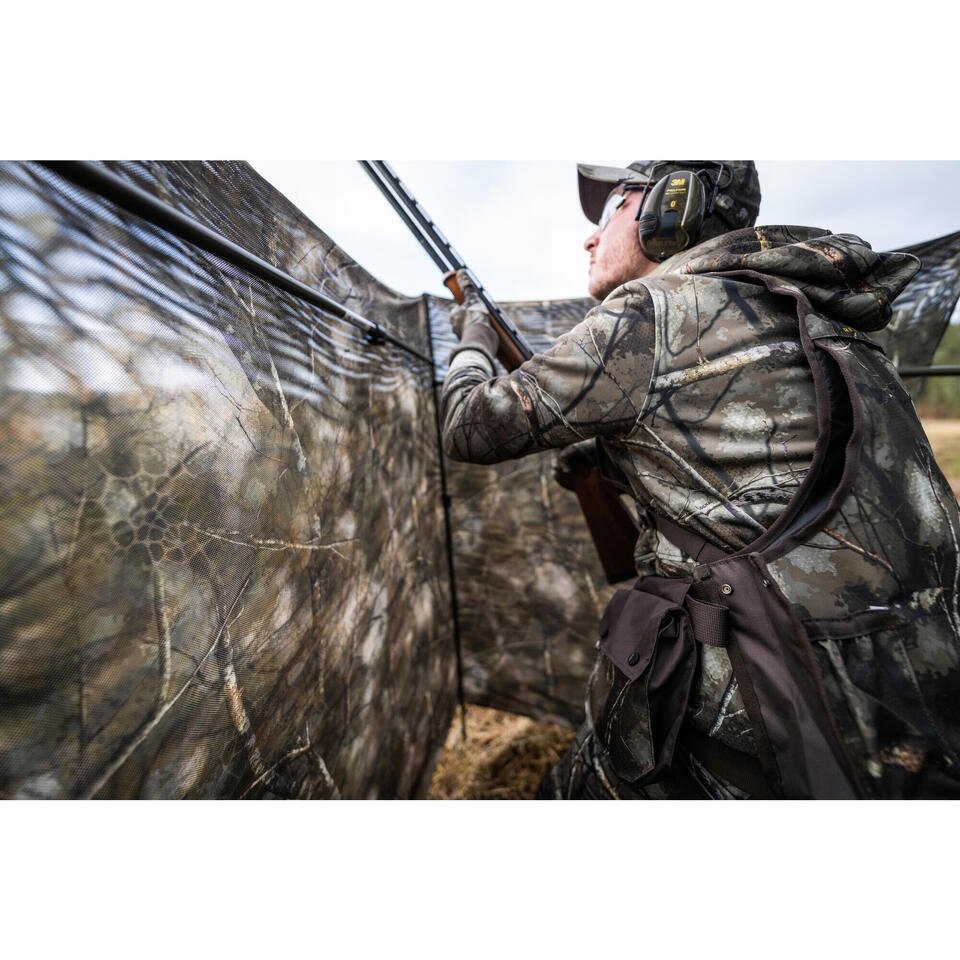 Двостороння маскувальна сітка (2 шари), що забезпечує два різні маскувальні мотиви (прихований і деревний) адаптуватися до більшості біотопів. Завдяки цій двосторонній маскувальній сітці (1,4 х 2,2 м) ви можете полювати під маскуванням. Двовимірна сітчаста структура.