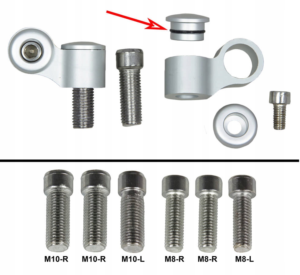 Включено кріплення дзеркала, представлене в Фото також включає. Використовується, ніж ті, що пропонуються в наборі (вони є дуже спорадичними випадками). Перед покупкою ми пропонуємо перевірити, чи на вашому мотоциклі один із гвинтів, які ми пропонуємо.